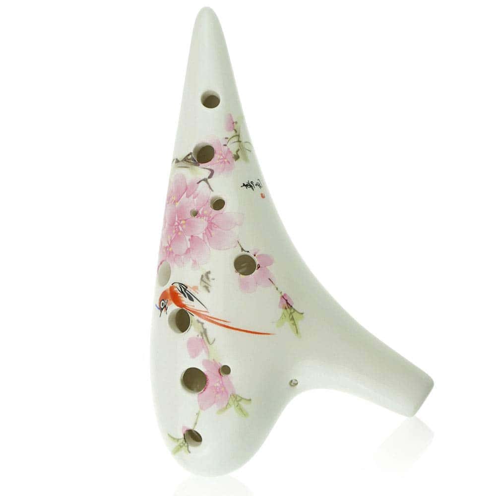 OcarinaWind «Pájaro Ama Flor» Ocarina de Cerámica de 12 Agujeros, Pintado a Mano