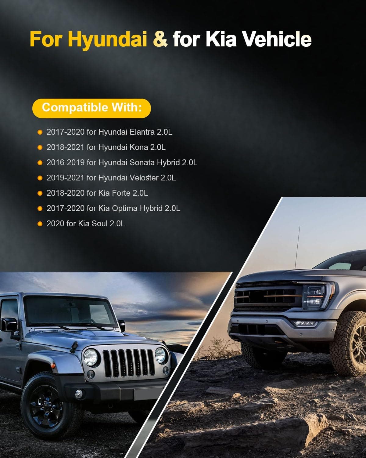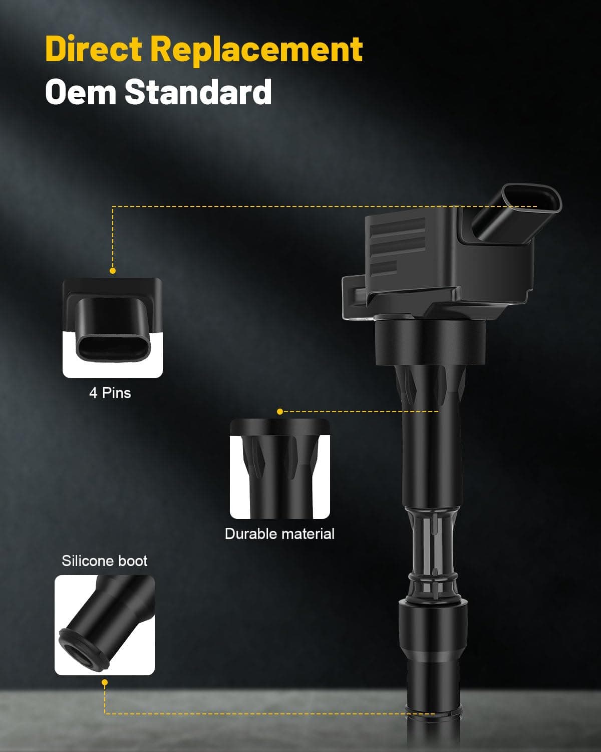 Descripción 2017-2020 para Hyundai Elantra 2.0L 2018-2021 para Hyundai Kona 2.0L 2016-2019 para Hyundai Sonata Hybrid 2.0L 2019-2021 para Hyundai Veloster 2.0L 2018-2020 para Kia Forte 2.0L 2017-2020 para Kia Optima Hybrid 2.0L 2020 para Kia Soul 2.0L Beneficios de las bobinas de encendido 1. No hay luz de Check Engine. Una bobina defectuosa puede hacer que se encienda esta luz del tablero. Reemplazar o actualizar la bobina puede apagar la luz. 2. Arranque más fiable. Una bobina de encendido desgastada puede evitar que su motor arranque. Las bobinas mejoradas mejoran las capacidades de arranque y pueden ayudar a asegurar que su vehículo arranque cada vez como debería sin tiempos de arranque largos. 3. Mejor desempeño. Una bobina de encendido rota puede hacer que su motor funcione bruscamente, tosa y haga explosiones. Estos síntomas son causados por fallos en los cilindros y bujías sucias a causa de una bobina defectuosa, lo que lleva a una pérdida de potencia. 4. Mejor economía de combustible. Cuando instala nuevas bobinas de encendido, su motor funciona mejor. Un motor que funciona mejor opera de manera más eficiente, lo que le brinda más millas por galón.
