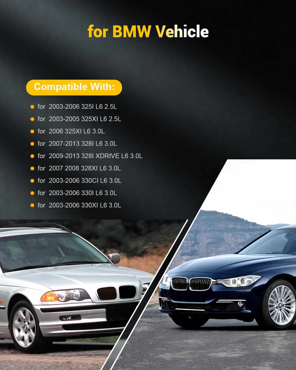 Descripción Compatible con 2011 1 Series L6 3.0L 2008 -2013 128I L6 3.0L 2008-2010 135I L6 3.0L 2003-2005 320I L6 2.2L 2007-2011 323I L6 2.5L 2001-2006 325CI L6 2.5L 2003-2006 325I L6 2.5L 2003-2005 325XI L6 2.5L 2006 325XI L6 3.0L 2007-2013 328I L6 3.0L 2009-2013 328I XDRIVE L6 3.0L 2007 2008 328XI L6 3.0L 2003-2006 330CI L6 3.0L 2003-2006 330I L6 3.0L 2003-2006 330XI L6 3.0L 2007-2012 335I L6 3.0L 2009-2010 335I XDRIVE L6 3.0L 2011 2012 335IS L6 3.0L 2007 2008 335XI L6 3.0L 2003-2005 525I L6 2.5L 2006-2007 525I L6 3.0L 2006-2007 525XI L6 3.0L 2008-2011 528I L6 3.0L 2009-2010 528I XDRIVE L6 3.0L 2008 528XI L6 3.0L 2003-2007 530I L6 3.0L 2006 2007 530XI L6 3.0L Compatible con 2008-2010 535I L6 3.0L 2010 535I GT L6 3.0L 2009- 2010 535I XDRIVE L6 3.0L 2008 535XI L6 3.0L 2011-2013 740I L6 3.0L 2011-2013 740LI L6 3.0L 2013 740LI XDRIVE L6 3.0L 2004 -2006 X3 L6 2.5L 2004-2012 X3 L6 3.0L 2004-2010 X5 L6 3.0L 2008-2011 X6 L6 3.0L 2003-2005 Z4 L6 2.5L 2003-2016 Z4 L6 3.0L 2006-2008 Z4 L6 3.2L