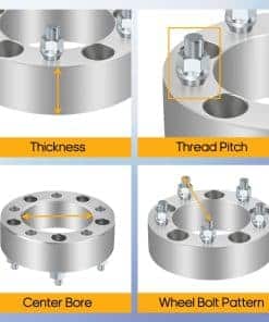 1. Separadores de rueda 5×5.5 (5×139.7mm) para 1989-1997 Geo Tracker y 1999-2005 Grand Vitara. 2. Especificaciones de separadores de rueda de 5 pernos: 2 pulgadas/50 mm; Patrón de pernos del vehículo: 5×5.5; Patrón de pernos de la rueda: 5×5.5; Roscas: 12×1.25; Centro de buje: 108. 3. Beneficios de los separadores de rueda de 2 pulgadas: Diseñados para mover las ruedas hacia afuera del centro, lo que brinda a su vehículo una postura más estable y permite mejores características de manejo. También aumentan la distancia de los neumáticos, resuelven problemas de distancia del calibrador de frenos, permiten la instalación de kits de elevación/reducción y neumáticos más anchos, grandes o de alta tracción. 4. Seguridad de los separadores de rueda de 5×5.5 a 5×5.5: Hechos de aluminio billet T-6 verdadero, con pernos de grado 10.9 tratados térmicamente y endurecidos preinstalados. La superficie proporciona una resistencia excepcionalmente robusta y ligera en comparación con los separadores de acero. 5. NOTA: Es requerido que vuelva a verificar la compatibilidad de su vehículo ANTES de comprar separadores de rueda de 5 pernos.
