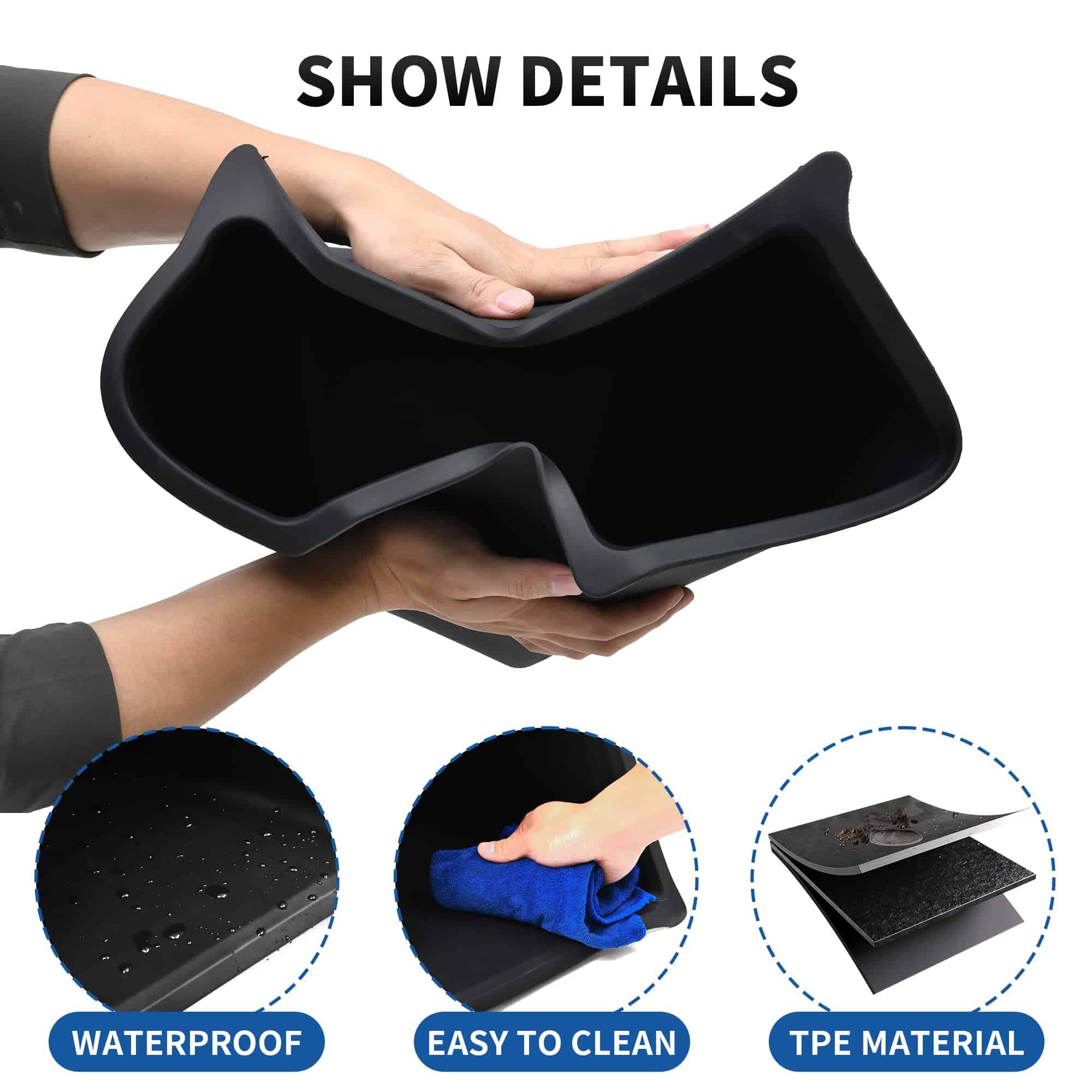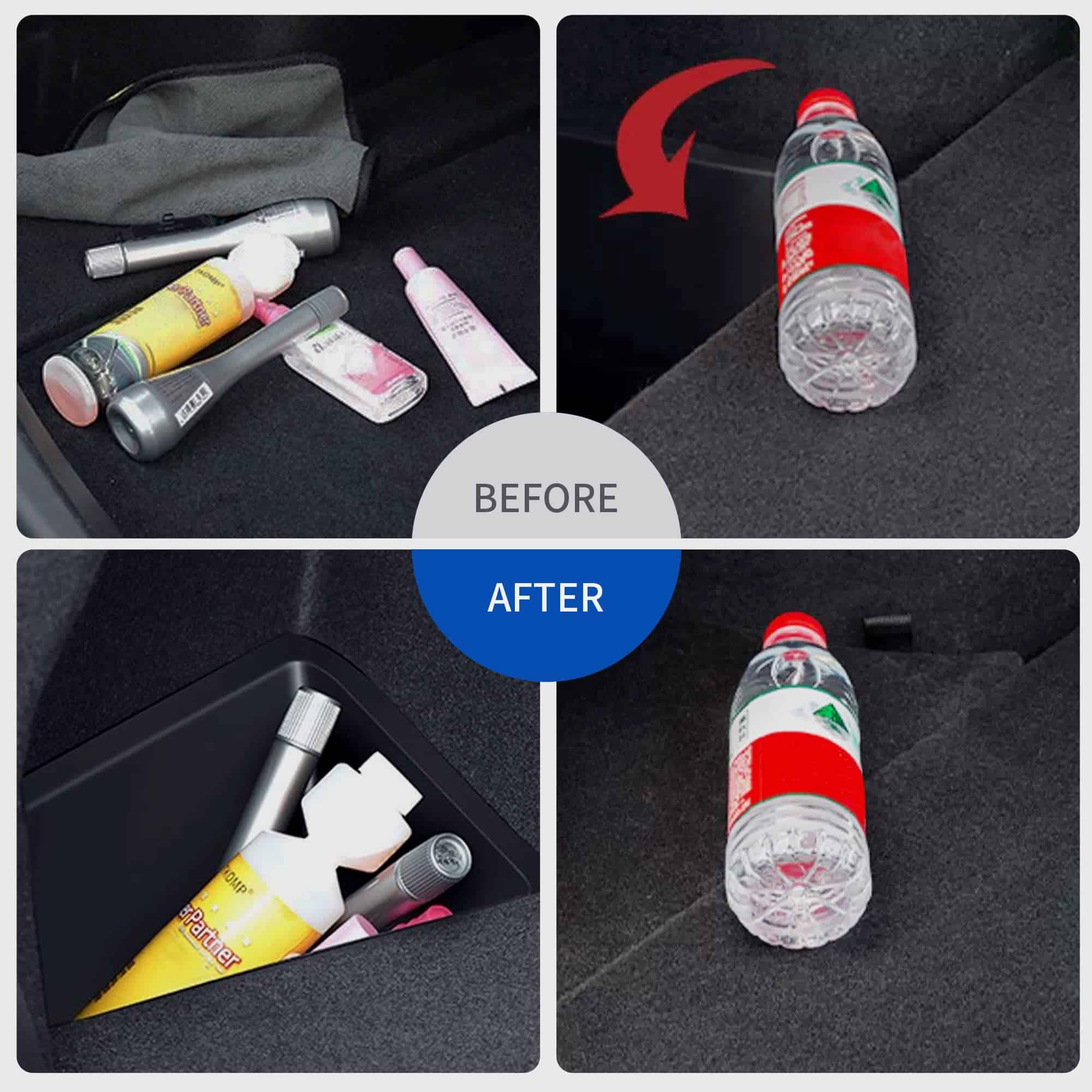 3. MALETERO COMPLETO DEL MODELO Y: Las cajas de almacenamiento del maletero perfectamente combinadas completan su modelo y; Las tapas con alfombra a juego expanden el espacio en el área de carga y evitan que los objetos rueden por los surcos profundos; El diseño inteligente hace que su coche esté más limpio y organizado.