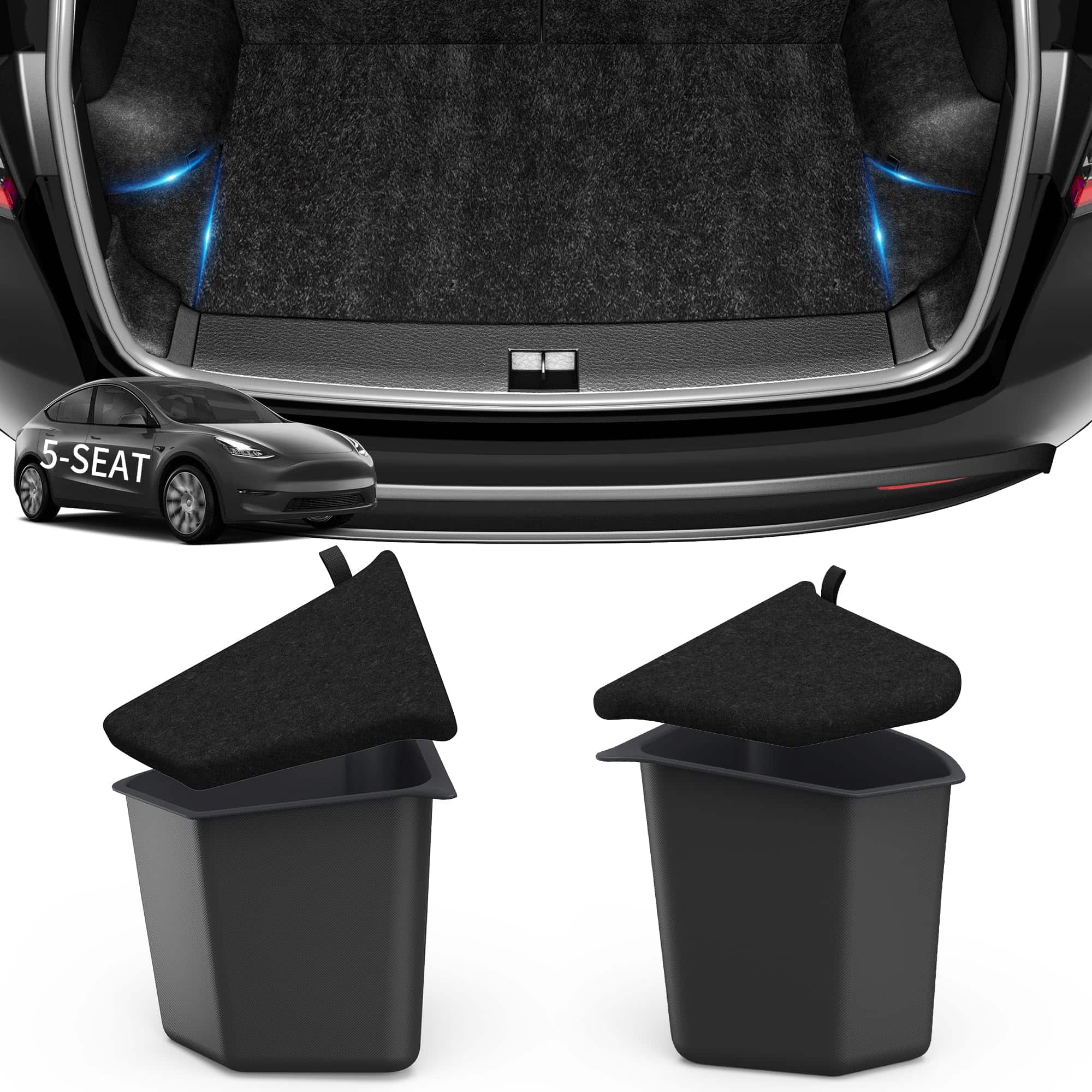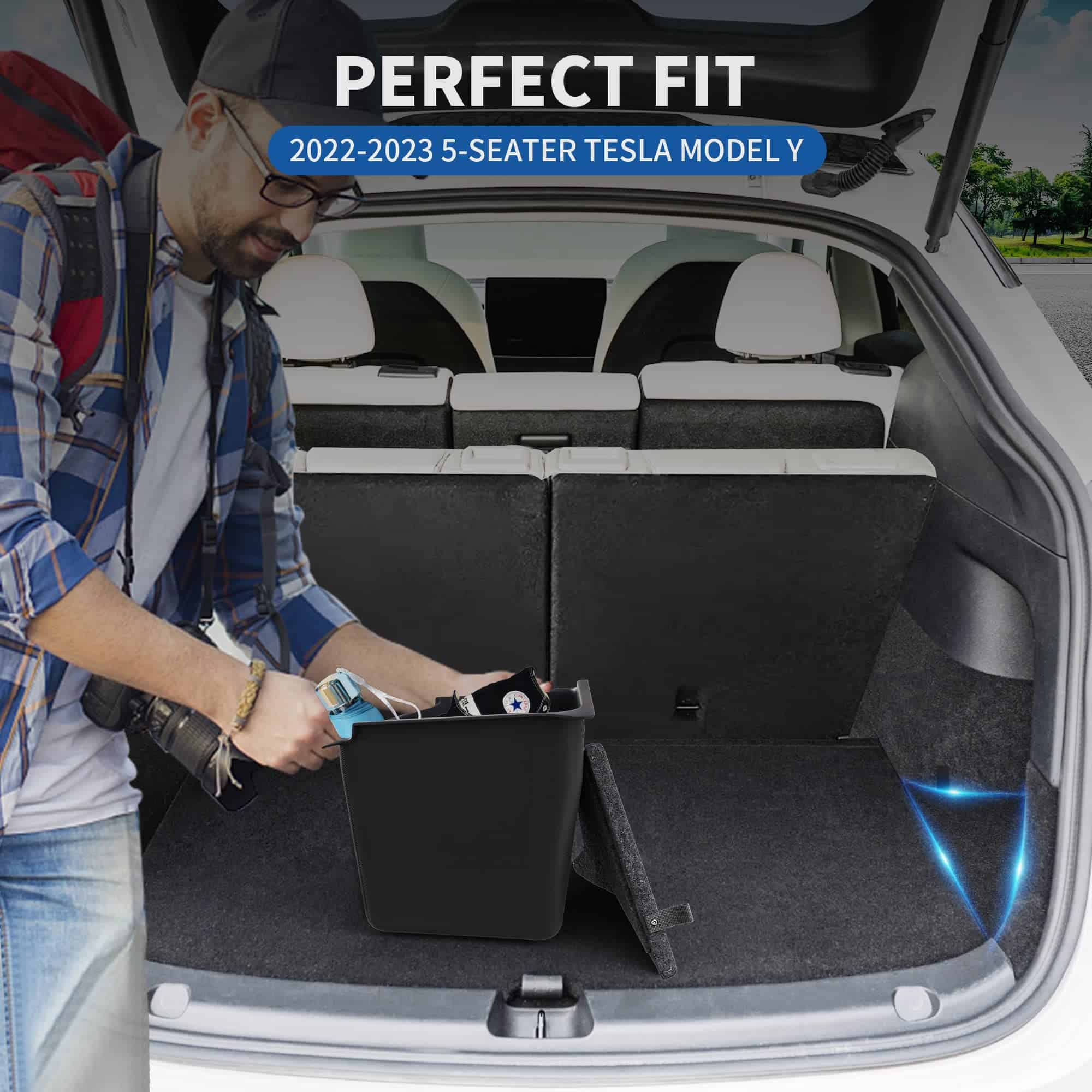 1. DISEÑO PERSONALIZADO: Los contenedores de almacenamiento del maletero del modelo y están diseñados a medida para el Tesla Model Y de 5 asientos; Compatibles perfectamente con el Tesla Model Y 2022 2023; Se ajustan perfectamente al espacio de almacenamiento lateral del maletero como si fueran parte original de fábrica.