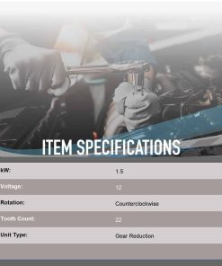ESPECIFICACIONES: 1.5kW/12 Voltios, CCW, Piñón de 22 Dientes TIPO DE UNIDAD: PMGR DISEÑO: PMGR VOLTAGE: 12 kW: 1.5 ROTACIÓN: CCW NÚMERO DE DIENTES: 22 NOTA 1: También reemplaza los arranques PMGR anteriores: 93BB-11000-KA, -KB, -KC; F3RZ-11002-C ( 3263) CARACTERÍSTICA 2: Desempeño y salida OE COMPATIBLE CON MERCURY: Mystique V6 2.5L 95-00 Cougar V6 2.5L 99-02 COMPATIBLE CON MAZDA: Tribute V6 3.0L 01-04 COMPATIBLE CON JAGUAR: X-Type V6 3.0L 02-08 X-Type V6 2.5L 02-05 COMPATIBLE CON FORD: Mystique V6 2.5L 95-00 Escape V6 3.0L 01-04 Contour V6 2.5L 95-00