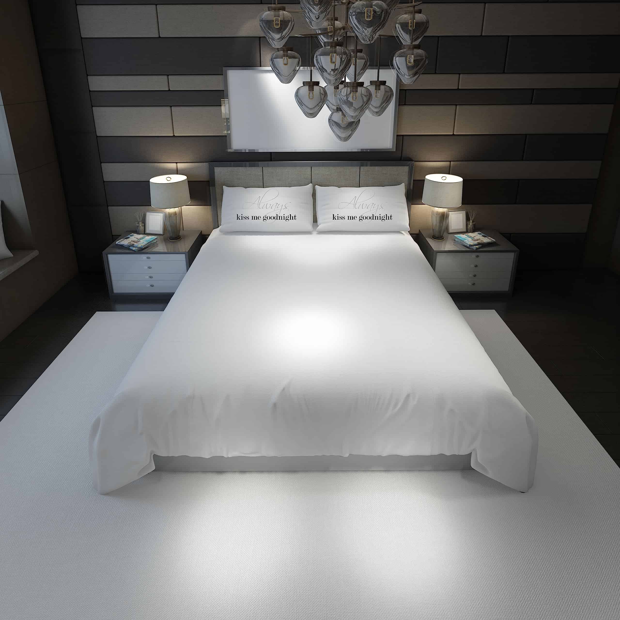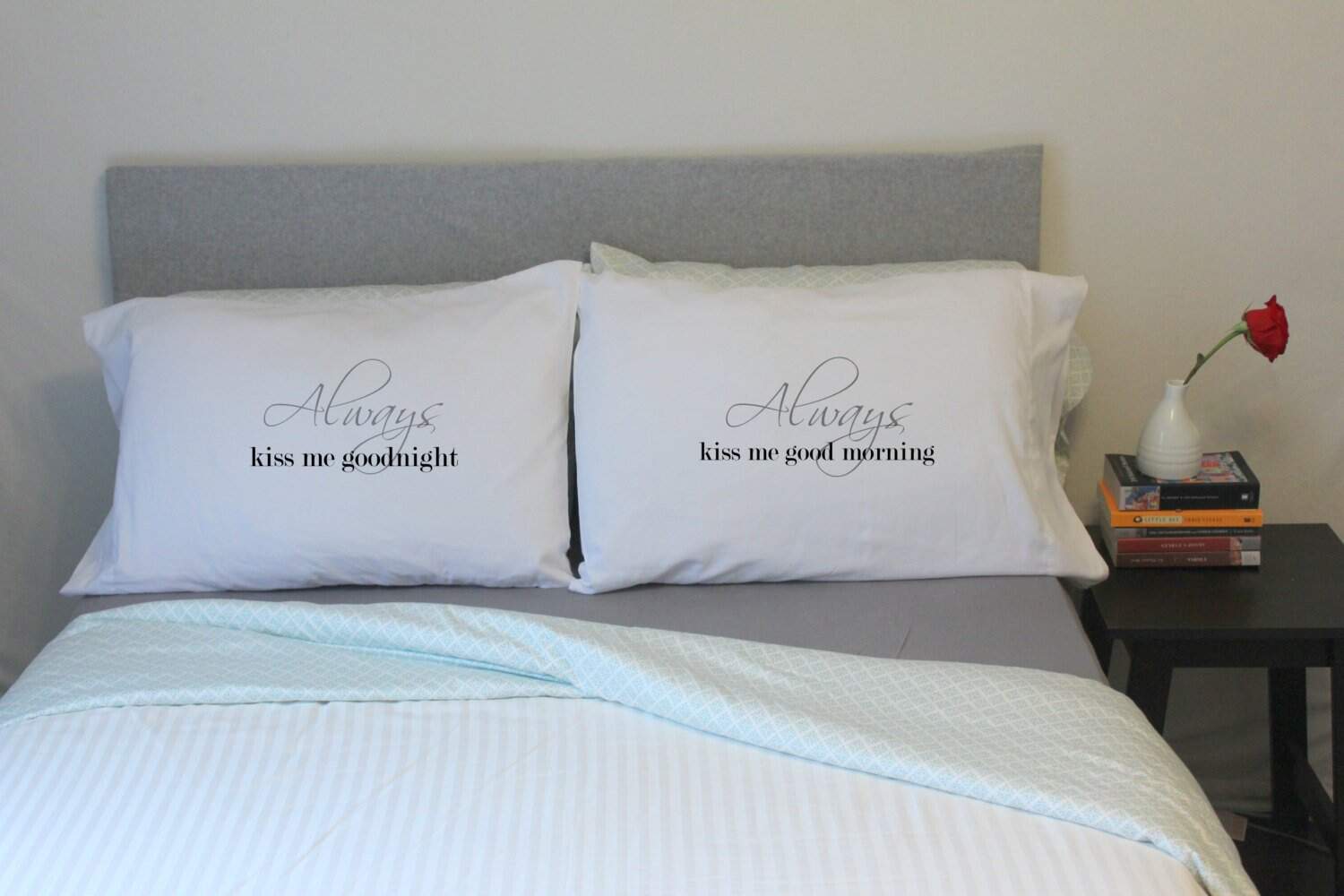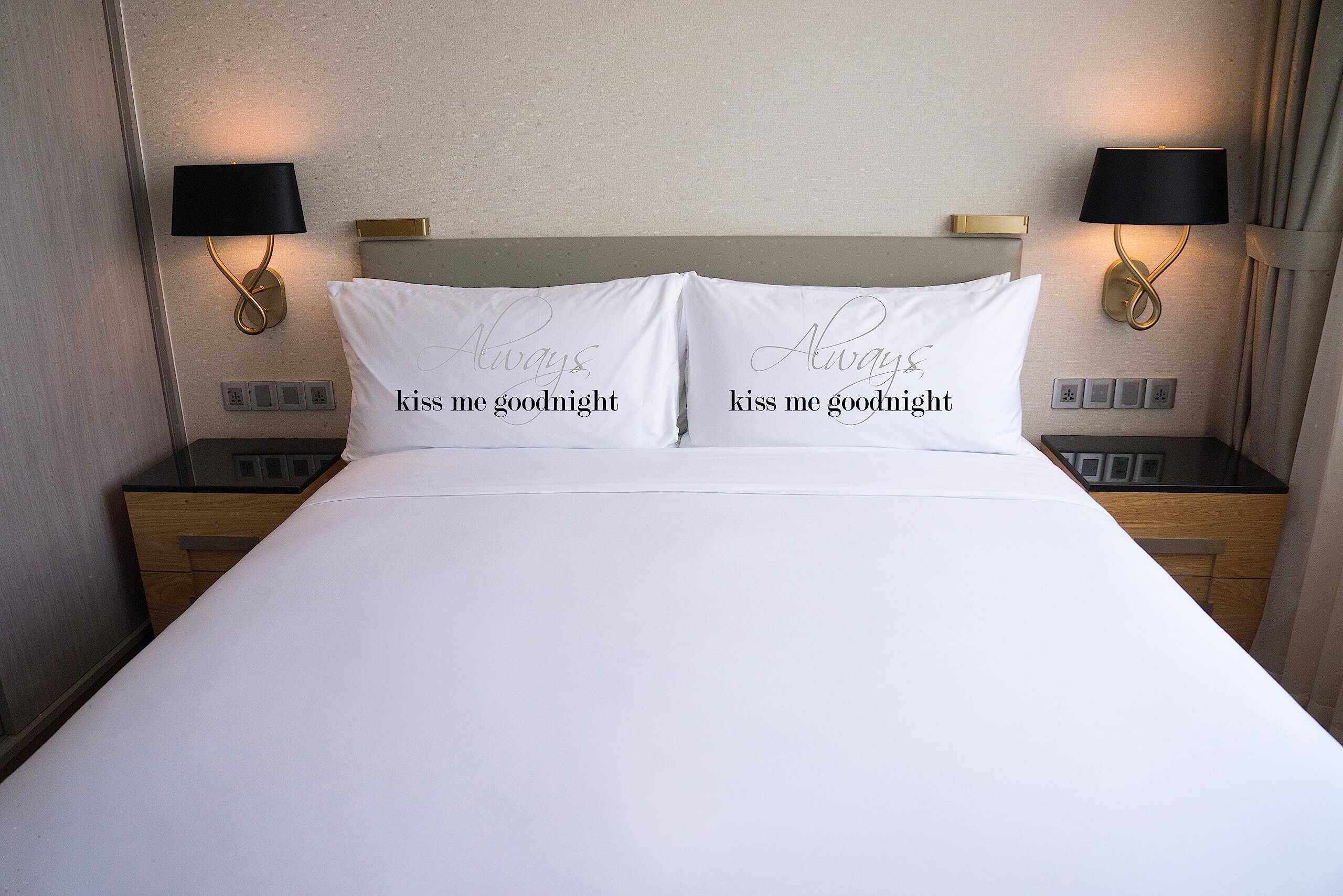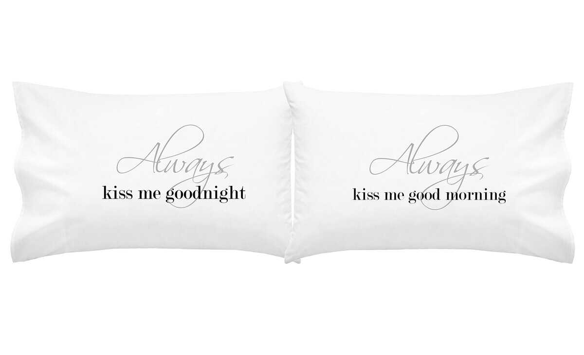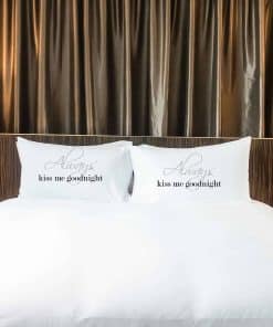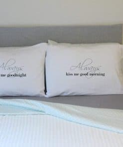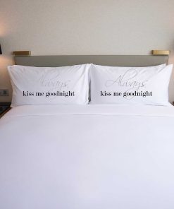 1. 2 Fundas de Almohada Incluidas – La funda de almohada izquierda dice «Always kiss me goodnight» La funda de almohada derecha dice «Always kiss me good morning».