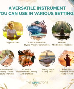 4. USOS VERSÁTILES: Las campanas de meditación tibetanas son instrumentos versátiles que pueden ser utilizados en diferentes entornos y para diferentes propósitos. Son comúnmente utilizadas en prácticas de meditación, sesiones de yoga y terapias de sanación del sonido. Además, las campanas Tingsha se pueden utilizar como instrumento musical para crear música ambiental.