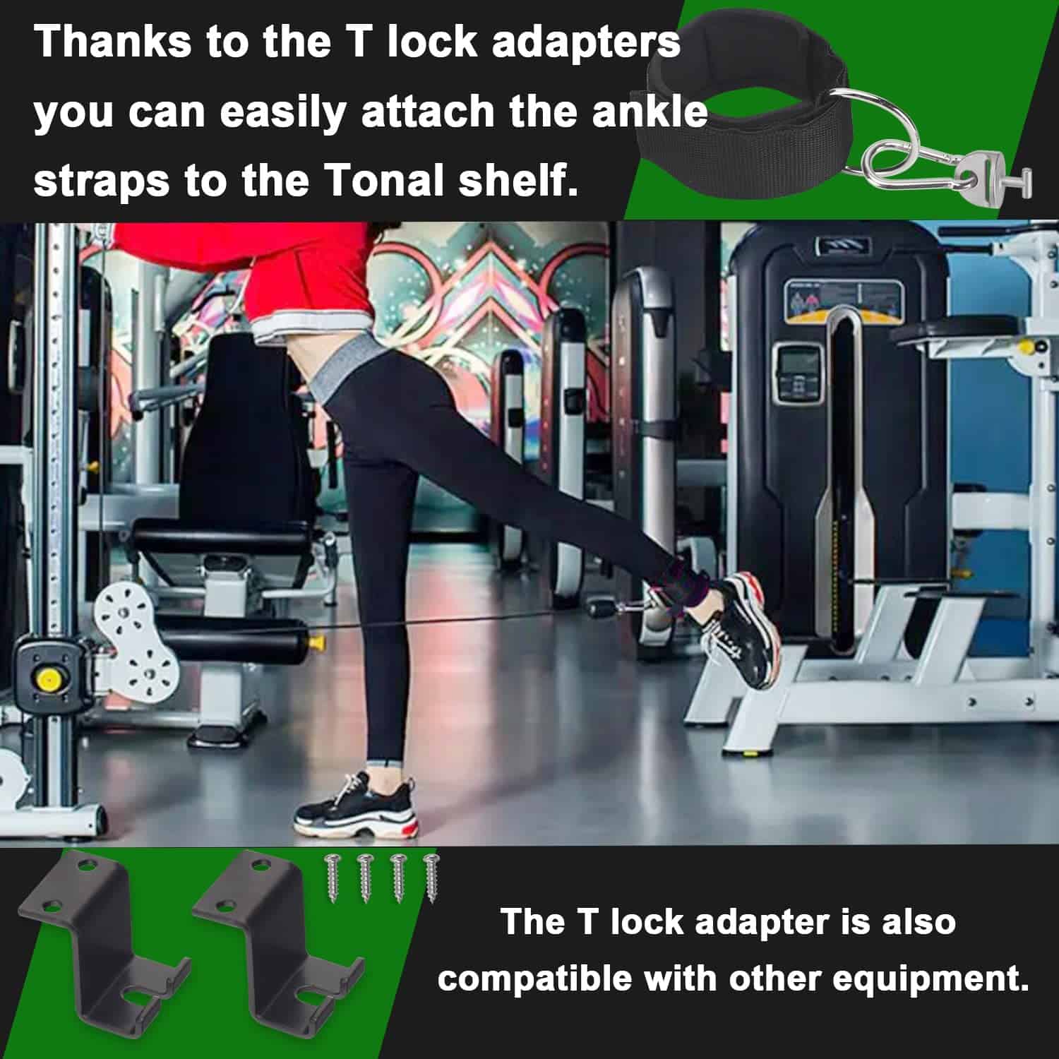 Correas de tobillo de alta calidad con acolchado de espuma generoso para la máxima comodidad. Perfectas para ejercicios de tobillo: patadas de cable, balanceo de cadera, elevaciones laterales de piernas, patadas de burro, entrenamientos de cuádriceps, etc. Incluye adaptadores T lock para usar con máquinas Tonal y ganchos de acero inoxidable para convertir estantes flotantes en espacios de almacenamiento adicionales para accesorios de gimnasio.