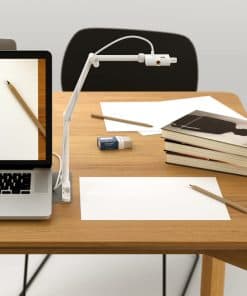 Cámara de documentos y webcam OKIOCAM T 5MP para maestros, compatible con PC, Mac, Chromebooks. Capaz de capturar materiales de tamaño Ledger completo o ambas páginas de un libro abierto a la vez con la cámara de documentos USB OKIOCAM T-4K (vista máxima de 13.86″ x 18.11″). Destaca como una elección portátil para exhibir imágenes de gran tamaño y alta resolución como mapas, planos y obras de arte. Obtén incluso la bolsa opcional Tech Pouch para almacenar perfectamente la cámara y llevarla en tu bolso protegida. Video QHD a 30 fps ofrece una visualización detallada y clara de los materiales presentados. Velocidad de enfoque rápido después de presionar el botón de enfoque automático hace que cambiar entre diferentes materiales sea suave y profesional. Diseño hecho en Taiwán: base plegable de alta calidad y brazo reforzado con fibra de vidrio hecho en Taiwán. Para garantizar la durabilidad, todas las bisagras del T soportaron más de 10,000 rotaciones en pruebas de laboratorio. Ajusta la cámara flexiblemente al ángulo deseado con el brazo multiarticulado. Incluye su propio software opcional para presentar, anotar y grabar video, personaliza la configuración de video como color, contraste y nitidez con OKIOLABS Camera Control. Compatible con Windows, Mac, Chrome y sistemas operativos de pantalla interactiva.