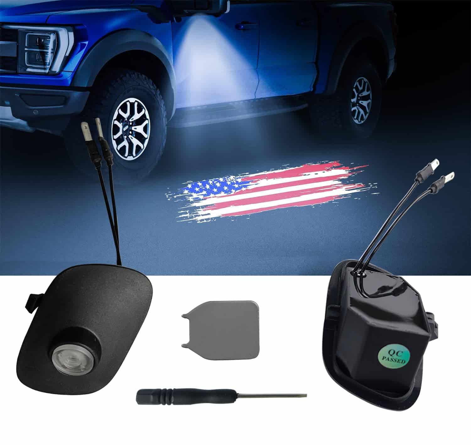 3. Par de Proyector de espejo lateral de automóvil LED para Logotipo de bandera de bienvenida de América