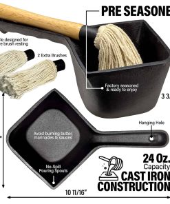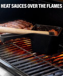 Olla de salsa de hierro fundido con pincel para barbacoa –