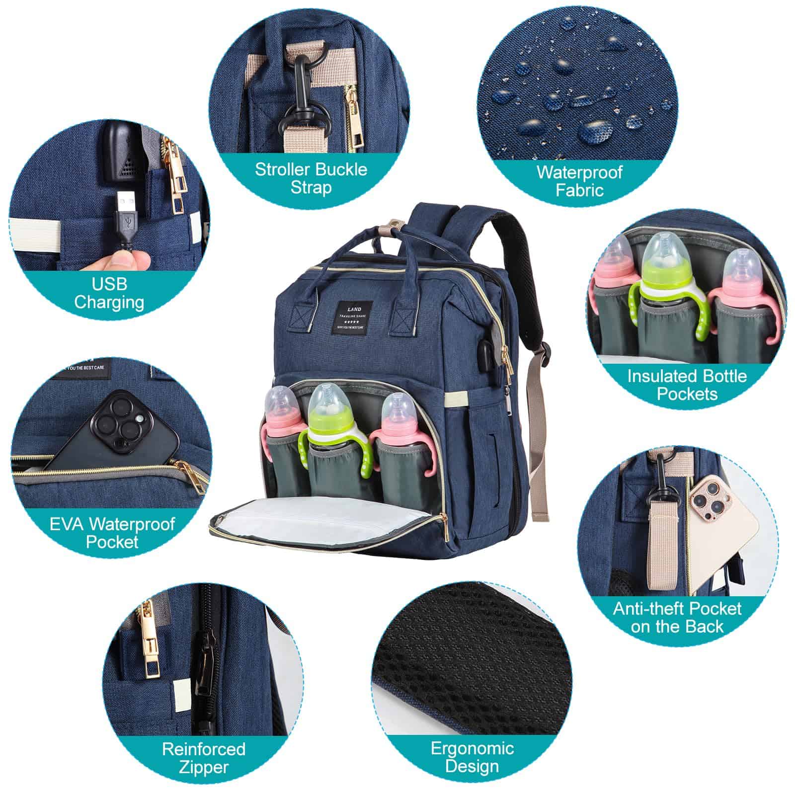 OMBRAT Mochila para Pañales, con Estación de Cambio, Bolso