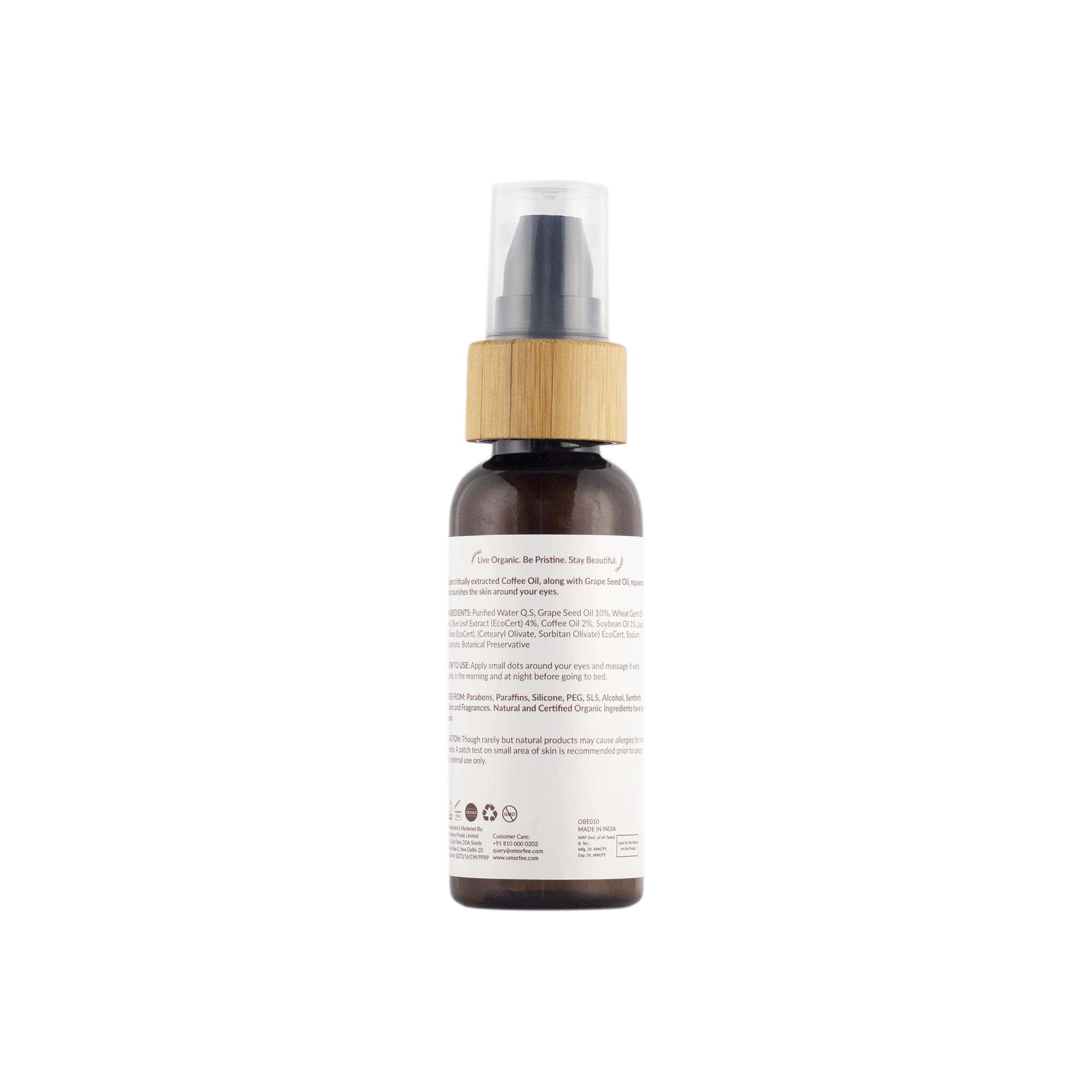 Deja que lo natural haga su trabajo con el poderoso Aceite de Café, Extracto de Hoja de Olivo y Aceite de Semilla de Uva para unos ojos claros y brillantes libres de hinchazón y ojeras. El potente Aceite de Café con Extracto de Hoja de Olivo disminuye las ojeras y la hinchazón. Los aceites de Semilla de Uva y Soja nutren y reparan la delicada piel del área de los ojos. ¡Despierta con ojos hermosos y brillantes todos los días! La pureza y sostenibilidad es nuestro lema y lo hemos extendido más allá de nuestros productos. Dado que nuestros productos son de una calidad extremadamente prístina, solo se han utilizado Bambú Puro y envases de grado FDA para mantener su pureza para ti! Aunque raramente, los productos naturales pueden causar alergias en algunas personas. Se recomienda hacer una prueba de parche en una pequeña área de la piel antes de usar. 1. Prepara la Bomba: Antes del uso inicial, presiona la cabeza de la bomba varias veces para liberar cualquier exceso de aire. 2. Precaución de Almacenamiento: Almacena en un lugar fresco y seco, lejos de la luz solar directa. 3. Advertencia de Contacto con los Ojos: Evita el contacto directo con los ojos. 4. Solo para Uso Externo: Esta crema está destinada solo para uso externo. Evita su uso en piel dañada o irritada. 5. Mantener Fuera del Alcance de los Niños: Asegúrate de que el producto se mantenga fuera del alcance de los niños. 6. Sensaciones Después de la Aplicación: Es normal experimentar una ligera sensación de calor o hormigueo en la piel después de la aplicación.