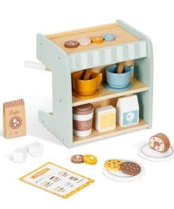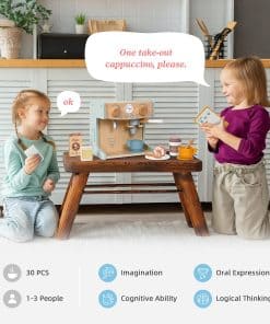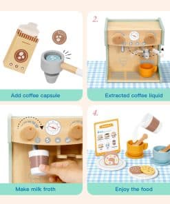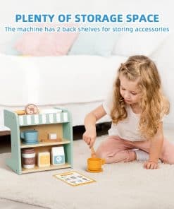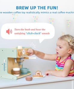 El lindo y realista conjunto de cocina de juguete de café de madera hará que tu hijo sea un pequeño barista. Es un juguete educativo resistente y duradero, divertido y sencillo.