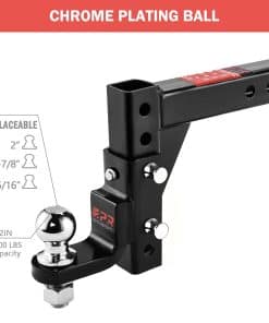 Artículo: OPENROAD Capacidad de 6000 lbs 6 Posiciones Caída Montaje de Bola para Remolque, 10″ Enganche de Remolque Ajustable Bola de Remolque de 2 pulgadas, 2 Clips de Seguridad y Candado de Pasador de Enganche de 5/8 Pulgadas Información: Caída Disponible en 5 ,6-1/2 ,8 y 9-1/2″ Elevación Disponible en 3-3/4 5-1/4 y 8-1/4 Tamaño de Bola: 2 pulgadas Tamaño de Pasador de Enganche: 5/8 pulgadas Tipo: Montaje de Enganche Ajustable Acabado: Recubrimiento en Polvo Negro + Cromo Unidades por Caja: 1pieza Peso Bruto: 8kg Tamaño del Paquete: 28 25 7.5cm Contenido del Paquete: 1 X Enganche de Remolque 1 X Candado de Pasador de Enganche 1 X Bola de Enganche 2 X Clip de Seguridad Nota: Por favor, vuelva a verificar el tamaño y la capacidad nuevamente, evite devolver los productos debido al tamaño y la capacidad! Si recibe un paquete roto, por favor tome una foto y avísenos primero.