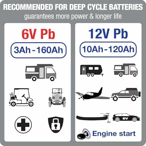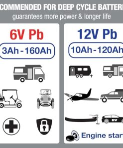1. Diseñado para optimizar el rendimiento y extender la vida de las baterías de ciclo profundo de 6V y 12V en tu RV o embarcación marina, también funciona muy bien para cualquier batería de arranque en coches, camionetas, ATV o motocicletas.