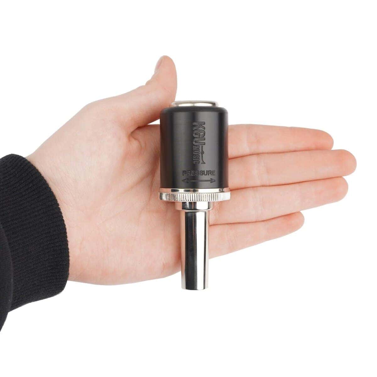 Dispositivo para optimizar la presión en el trombón, compatible exclusivamente con boquillas de gran shank. Diseñado para romper el hábito de aplicar una presión excesiva a la boquilla al tocar notas altas. Utilícelo durante 10 a 30 minutos durante su práctica para ganar un mejor control sobre su boquilla. Apto para músicos de trombón de todos los niveles, desde principiantes hasta expertos. Fácil montaje y desmontaje, a diferencia de la mayoría de los modelos, nuestro optimizador de trombón está equipado con imanes, por lo que su funcionamiento se basa en la repulsión. Muchas opciones de configuración. A diferencia de los dispositivos con muelles, que ofrecen solo 5-6 posiciones, la tasa de activación de nuestro optimizador de trombón se puede ajustar con cada milímetro. Gire en sentido horario o antihorario para regular el nivel de presión, haciéndolo más fuerte o más pequeño.