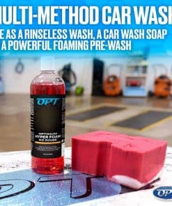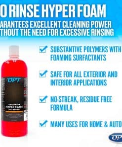 Desarrollado por detallistas para detallistas, Optimum Polymer Technologies, Inc. siempre ha desafiado la norma y se ha dirigido hacia productos de detallado de autos más eficientes y útiles. El lavado de autos No Rinse original, la primera cera en aerosol para autos con inhibidores UV, y ahora estamos difuminando la línea entre el jabón de lavado de autos tradicional y el lavado de autos sin enjuague. Hemos tomado nuestro revolucionario ONR No Rinse que ha establecido el estándar para todos los productos de lavado sin enjuague, y hemos agregado una mezcla de surfactantes patentada. El jabón para lavado de autos Hyper Foam ONR utiliza las propiedades encapsulantes de los polímeros y el poder de levantar la suciedad de la espuma, para crear un lavado de autos híbrido sin enjuague que funciona con la eficiencia del lavado sin enjuague y la efectividad del jabón de lavado de autos tradicional. Hyper Foam es seguro en todas las superficies interiores y exteriores, y es ideal para usar en recubrimientos protectores, PPF, cera para autos, sellador de pintura y envolturas. Para una espuma gruesa seria, rocíe con un cañón de espuma, agite con una Esponja Grande Roja y seque con una toalla de microfibra. Para mayor conveniencia, puede usar un rociador de espuma o utilizar como método tradicional de lavado sin enjuague en un balde. Hyper Foam dejará una superficie limpia y chirriante, sin protección ni residuos, y lista para Opti-Seal o su elección de productos de protección para autos. Como todos nuestros productos de limpieza para autos, Optimum Hyper Foam ONR Jabón para autos fue desarrollado y fabricado en Memphis, Tn.
