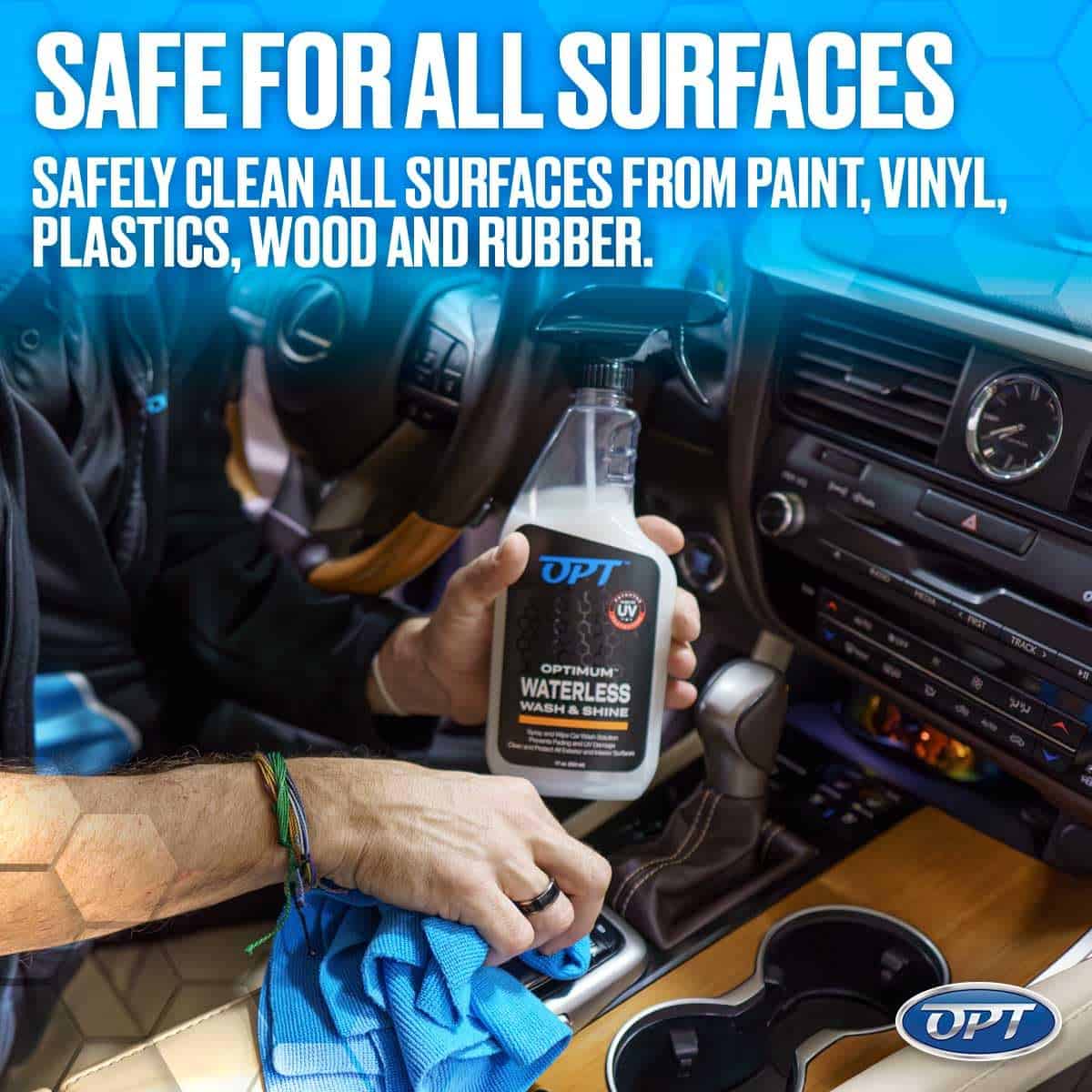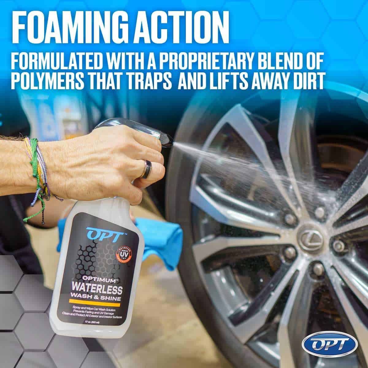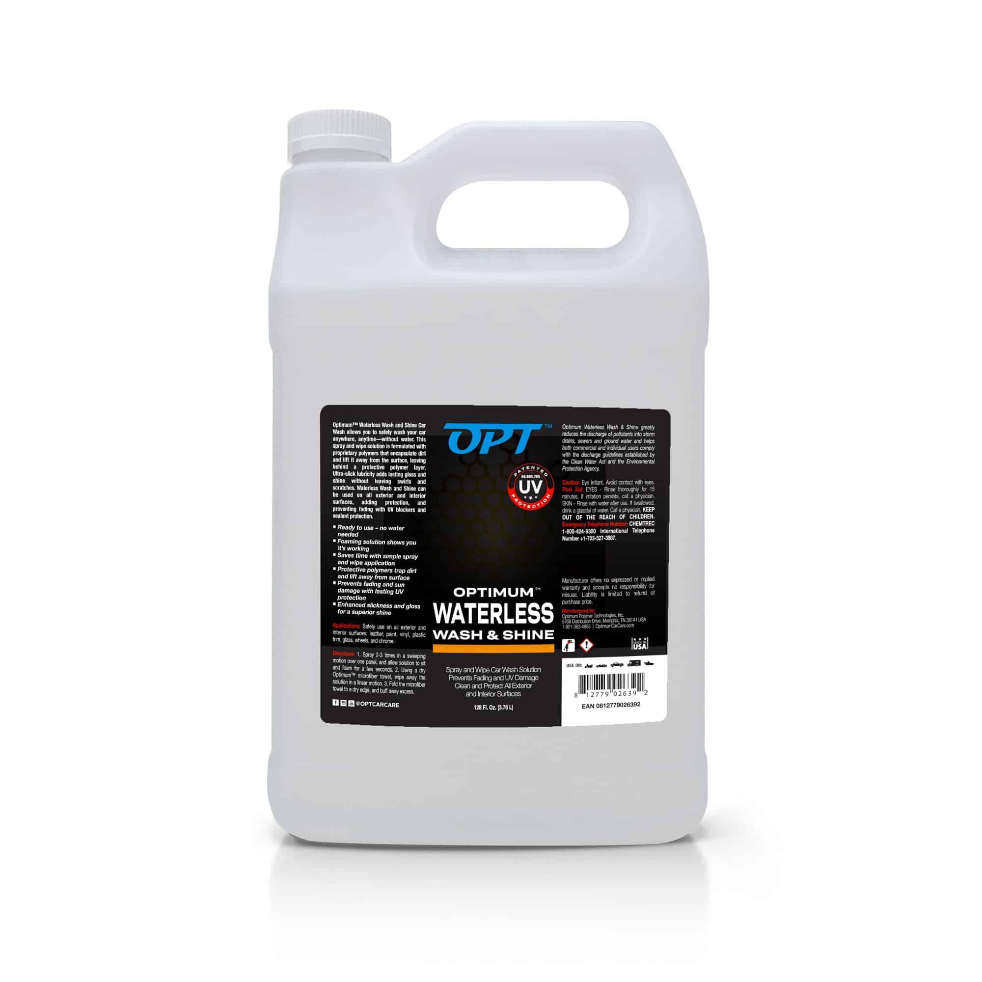 Optimum Waterless Wash and Shine Car Wash le permite lavar su auto de manera segura en cualquier lugar y momento sin agua. Esta solución de rociar y limpiar está formulada con polímeros patentados que encapsulan la suciedad y la levantan de la superficie, dejando una capa protectora de polímeros. Con lubricidad ultra resbaladiza que agrega brillo y brillo duradero, y previene los swirls y rayones. Waterless Wash and Shine se puede usar en todas las superficies exteriores e interiores, agregando protección y previniendo la decoloración con bloqueadores UV y protección selladora. El lavado de autos sin agua es perfecto para un detallador rápido final al llegar a la exposición de autos, y es un excelente paso de mantenimiento entre los lavados de autos sin enjuague ONR. Realmente un producto para usar en todas partes; ideal para cuero, vidrio, superficies pintadas, cromo, ruedas, molduras de vinilo, tapicería de tela, alfombrillas, caucho, componentes del tablero y más. Al igual que todos los productos de limpieza de Optimum Polymer Technologies, Inc., Optimum Waterless Wash and Shine está hecho en Memphis, Tennessee, EE. UU.