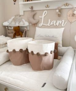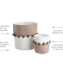 1. SIZE: Choose from Two Convenient Sizes: Small: Compact 9 x 10 & Large: Spacious 15 x 16. 2. NURSERY ESSENTIAL: Elevate Your Nursery with Adorable Pom Pom Accents These Chic Storage Bins Keep Your Little One’s Space Tidy and Stylish. 3. FABRIC STORAGE BASKET: Versatile and Practical Perfect as a Toy Bin for Easy Organization or as a Chic Addition to Your Baby’s Changing Station for Diapers and Wipes. 4. BABY REGISTRY ESSENTIAL: A Must-Have for New Parents This Delightful and Flexible Storage Solution is Ideal for Any Baby Registry or as a Sweet Gift for Baby Showers and Milestone Celebrations. 5. ORGANIC COTTON: Peace of Mind for Parents Crafted with Pure Organic Cotton, Free from Harmful Chemicals, and Safety Tested for Your Baby’s Well-Being. 6. MULTIFUNCTIONAL: From Toys to Laundry to Any Room in Your Home These Versatile Baskets Are Perfect for Keeping Your Space Neat and Organized, Anywhere, Anytime