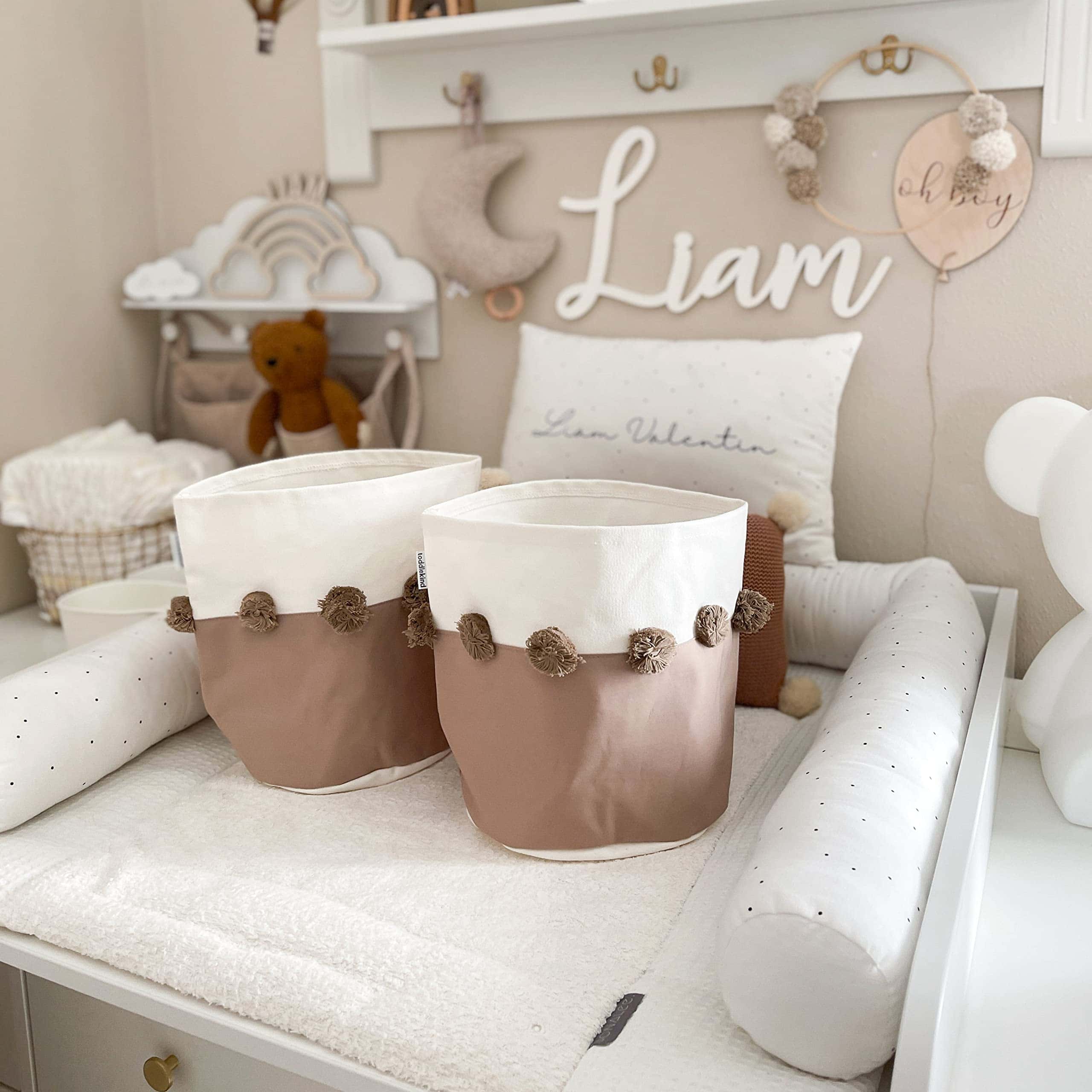Organic Cotton Nursery Storage Bins with Pom Pom Accents |