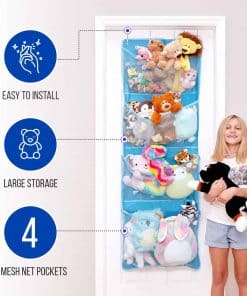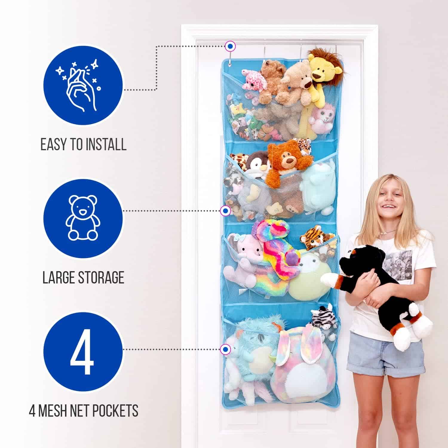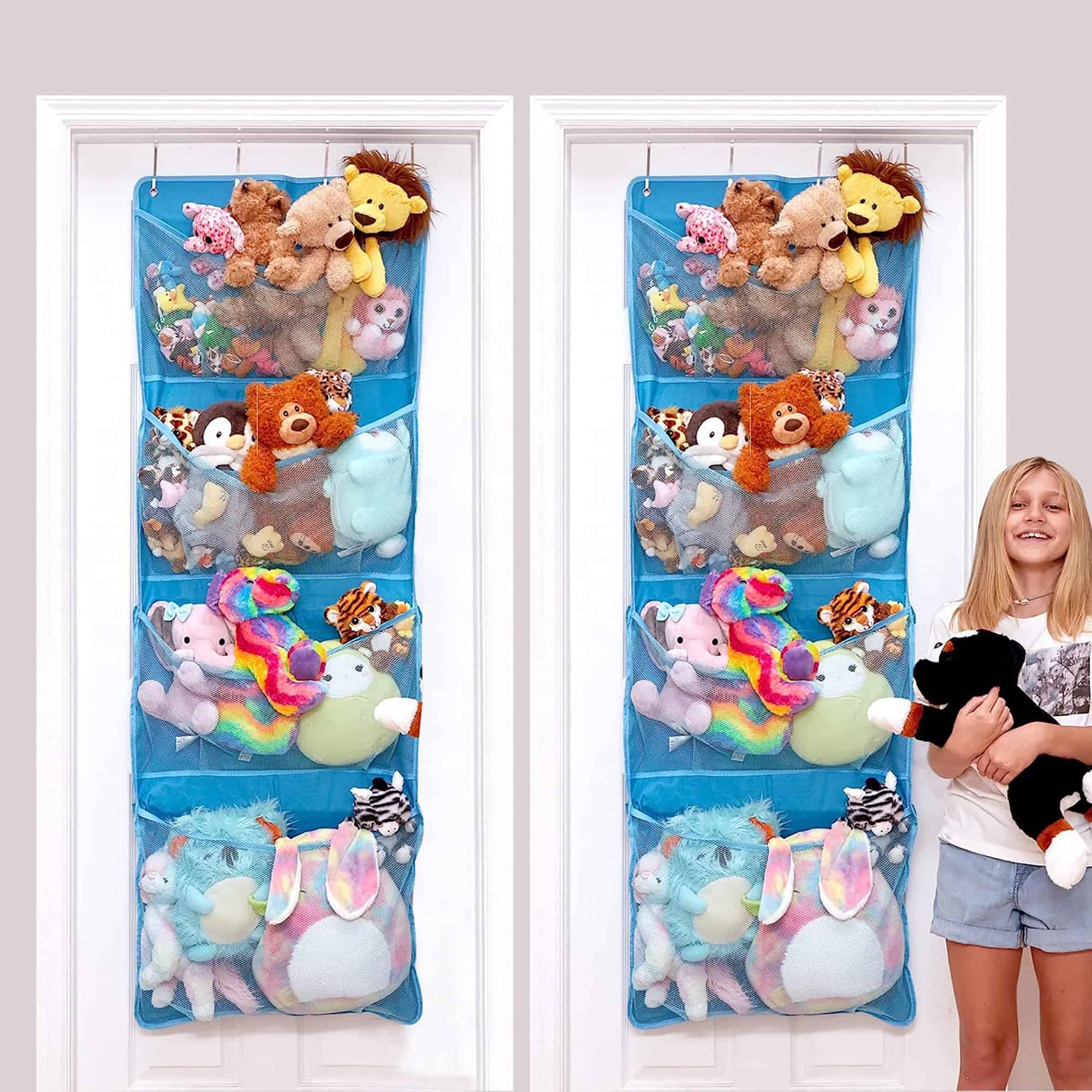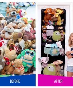 INSIDE OR OUTSIDE: Our organizers can be stored on the inside or outside of a door depending on how visible you want your collection! Having guests You can always put it on the inside of a closet door or even roll up the entire thing with your stuffies inside and temporarily store them away.