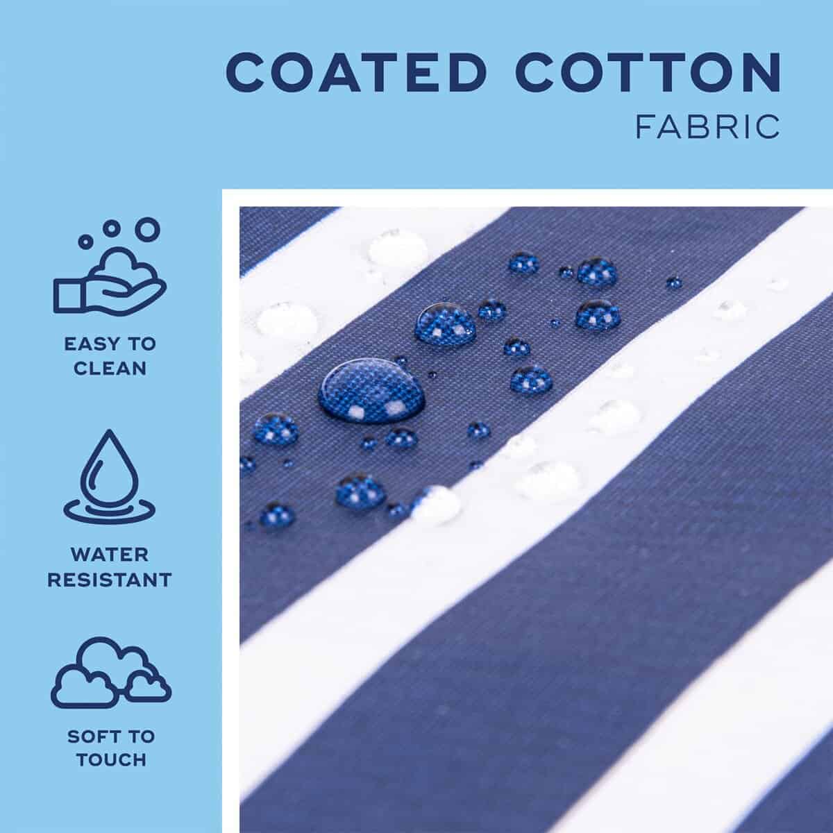 3. La tela de ALGODÓN RECUBIERTO es 100% algodón resistente y duradero. Laminado con un revestimiento resistente al agua, es suave al tacto, pero capaz de resistir la suciedad, las manchas y la humedad. Fácil limpieza en caso de un desastre con el maquillaje.