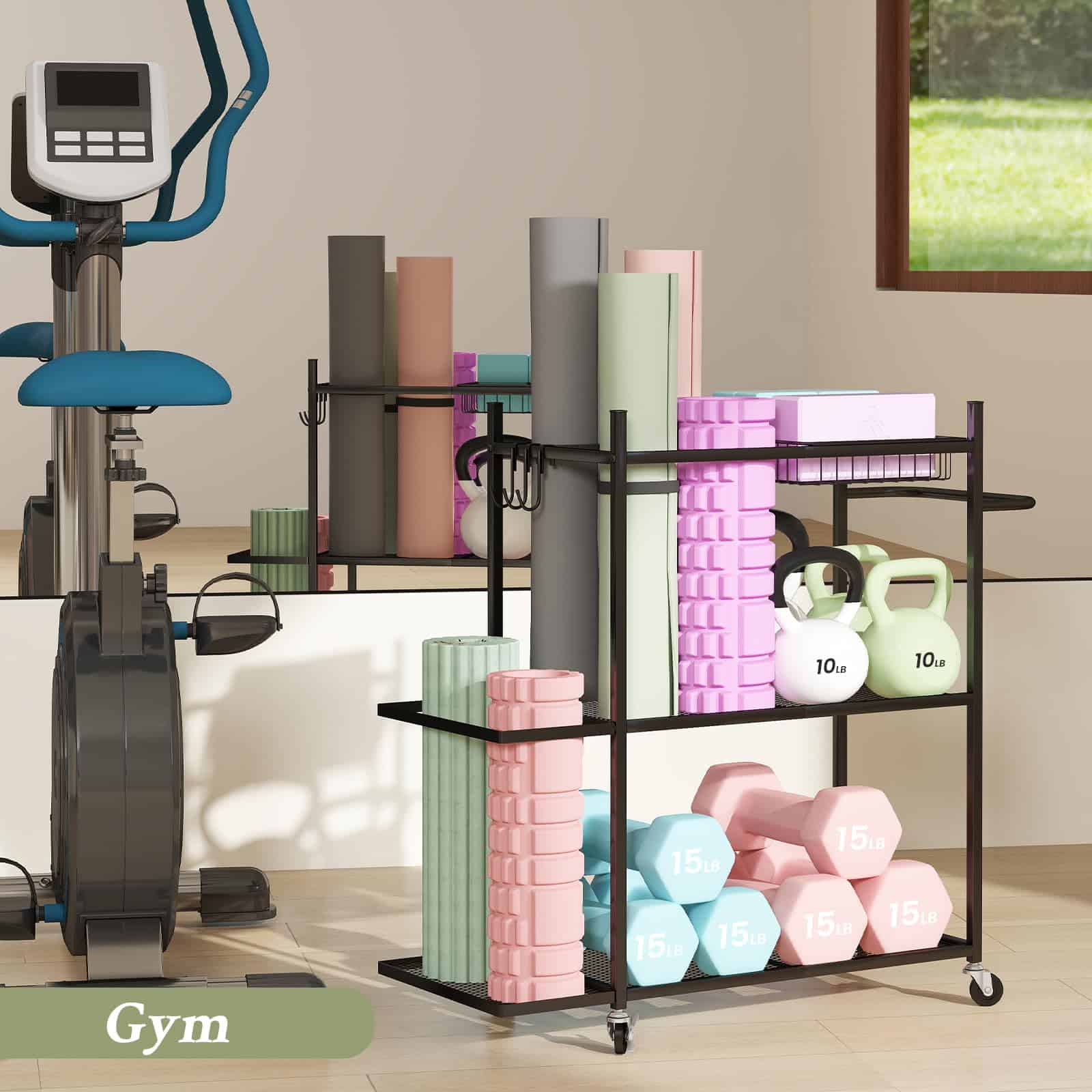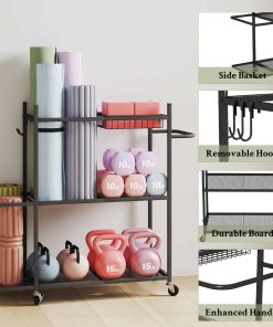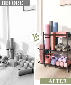 3. Organización Eficiente: La capacidad de este equipo de gimnasio en casa es verdaderamente notable. Cuenta con múltiples niveles y compartimentos, permitiéndote almacenar una amplia variedad de equipos deportivos. Ya sea pesas, colchonetas de yoga, bandas de resistencia, hay un espacio dedicado para cada artículo.