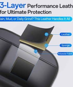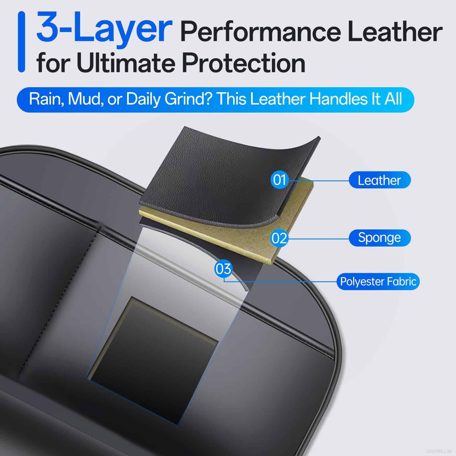 1. Material de Cuero: Nuestro protector de asiento trasero de coche está fabricado con cuero PU premium. Es resistente a la abrasión y está diseñado para durar. Además, es lavable, lo que facilita la limpieza con solo usar un paño húmedo. Ya no tendrás que preocuparte por que el asiento se ensucie por ser pateado. También protege tu asiento de arañazos, derrames, manchas, marcas de roces, barro, suciedad y desgaste.