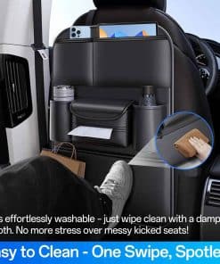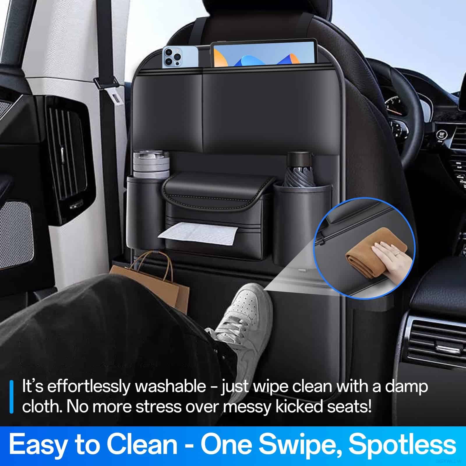 5. Bonitos Accesorios para Coches: Actualiza el interior de tu coche con un organizador de asiento trasero. Este organizador de asiento trasero de coche es un imprescindible para cualquier propietario de coche. Nuestros tapetes de suelo para asientos traseros se ajustan a la mayoría de sedanes, coches, Jeeps, camiones, furgonetas y SUVs, y tienen un tamaño lo suficientemente grande como para cubrir los respaldos de los asientos delanteros