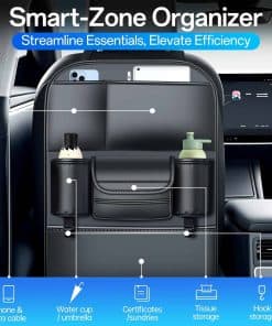 4. Diseñado para Tesla: Disfruta del diseño simple y hermoso de este organizador de bolsas de supermercado para asiento de coche negro. No solo protege el asiento trasero de tu coche de manchas, sino que también añade espacio de almacenamiento y un toque de estilo al interior de tu vehículo. Este organizador de asiento trasero de coche está diseñado específicamente para los propietarios de Tesla. Tanto en términos de color como de tamaño, se integra perfectamente con el interior original, como si fuera una parte original del coche.