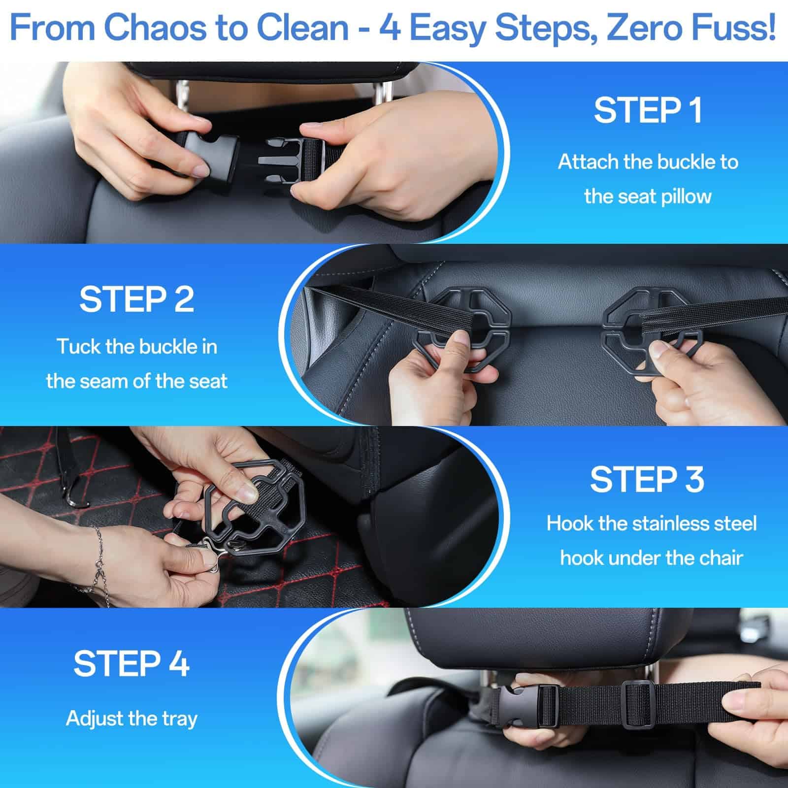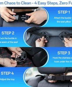 3. Tamaño y Fácil de Instalar: Este accesorio de asiento de coche mide 23.62 x 16.14 pulgadas, lo cual es lo suficientemente grande para cubrir el respaldo de tu asiento de coche. No se necesitan herramientas durante la instalación. Simplemente fija las correas de instalación en el reposacabezas o el asiento, y tendrás una bolsa de almacenamiento que combina funcionalidad y estética.