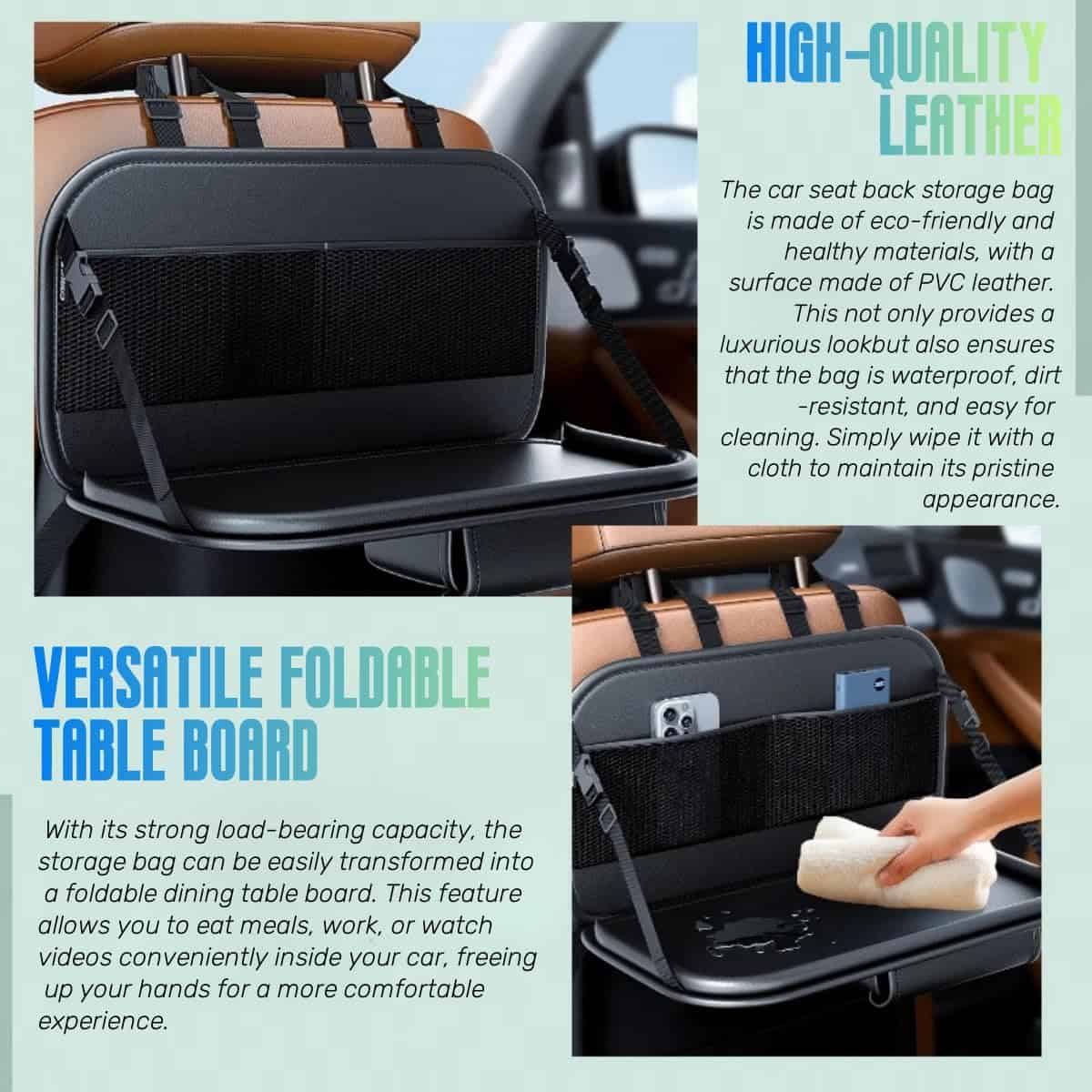 4. MULTIFUNCIONAL. Es un organizador de asiento delantero o organizadores de asiento trasero, que se puede utilizar como una bolsa de basura, pero también se puede colocar en otros lugares de su automóvil, para que el interior de su automóvil esté más ordenado y limpio.