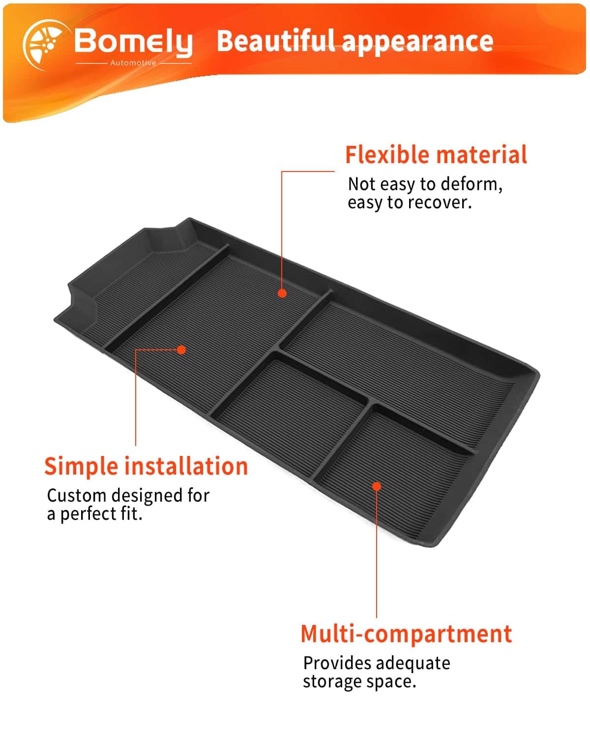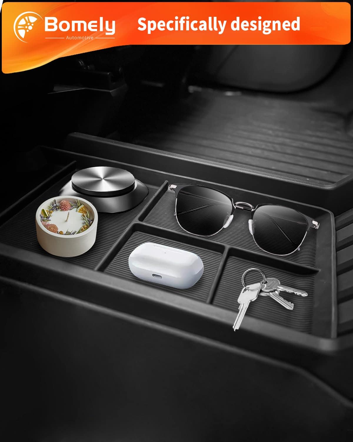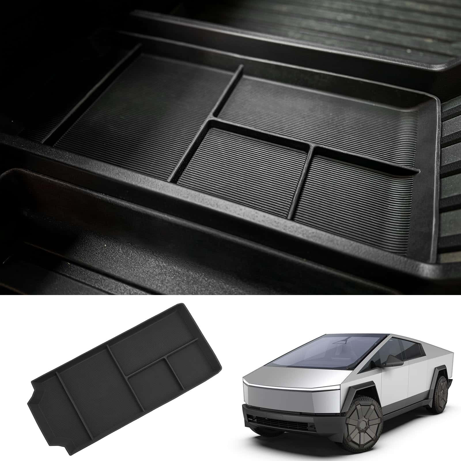 Compatible con: Bandeja organizadora de consola central Bomely especialmente diseñada para el Tesla Cybertruck 2023-2024, no apta para otros vehículos.