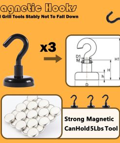 2. Ganchos Magnéticos Versátiles para Utensilios de Cocina– Nuestro paquete de 20 ganchos de parrilla, incluido con el organizador, le permite colgar sin esfuerzo sus herramientas de barbacoa y utensilios de cocina. Estos ganchos magnéticos fuertes se pueden colocar en cualquier superficie metálica, haciendo que su experiencia de cocina al aire libre sea más organizada y conveniente.