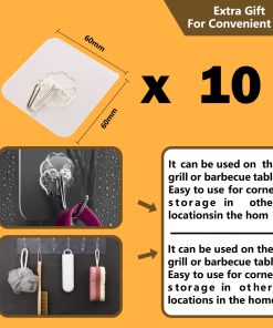 4. Ganchos Adhesivos Transparentes Adicionales para Versatilidad– Nuestros ganchos adhesivos transparentes de bonificación ofrecen versatilidad adicional, permitiéndole colgar artículos tanto en interiores como en exteriores con facilidad. Perfectos para artículos livianos, estos ganchos hacen que las soluciones de almacenamiento sean más accesibles donde las necesite.