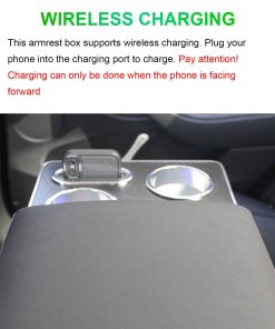 Esta caja de reposabrazos es compatible con la carga inalámbrica de teléfonos móviles. (Nota! La carga solo se puede realizar cuando la pantalla del teléfono móvil está hacia adelante).