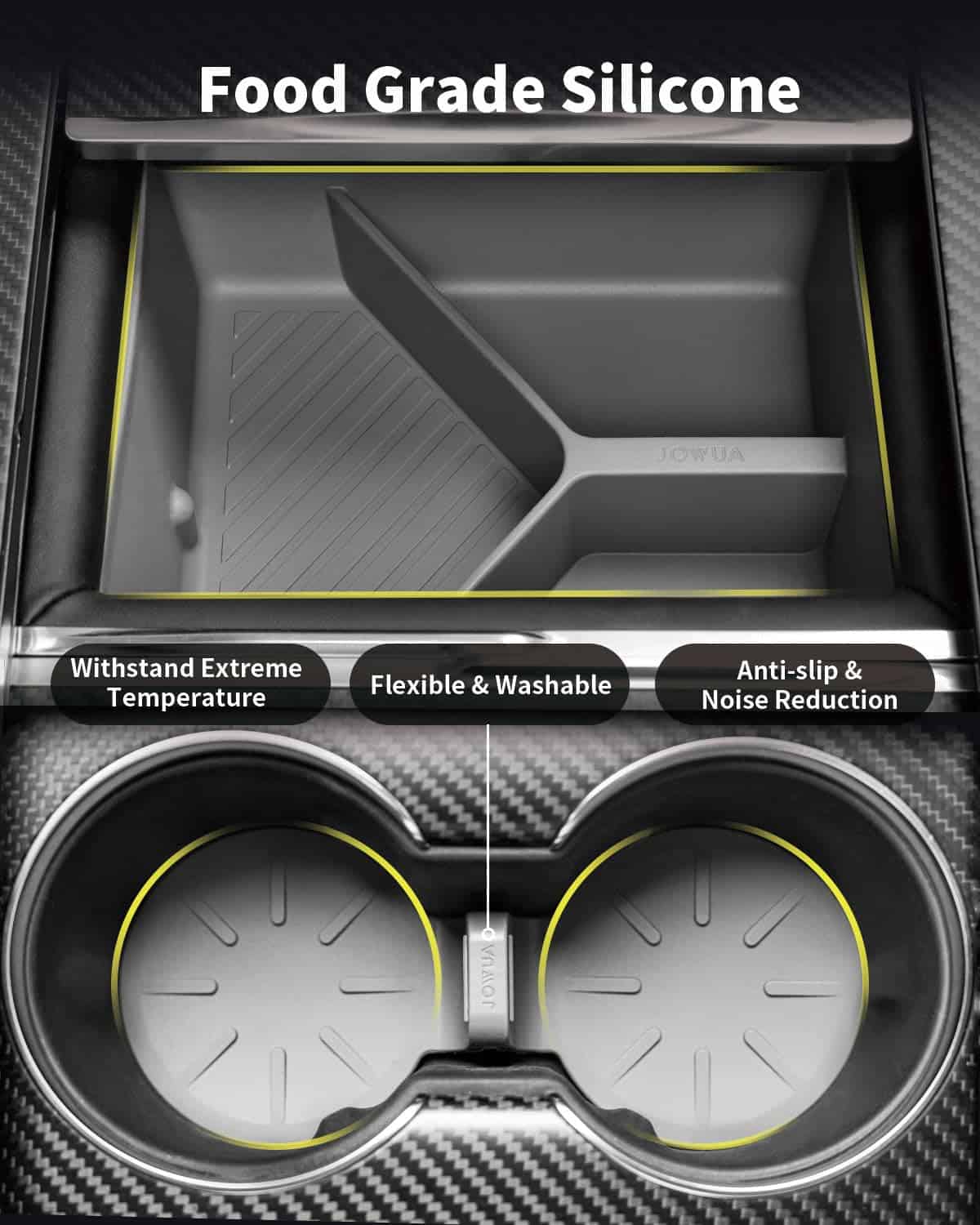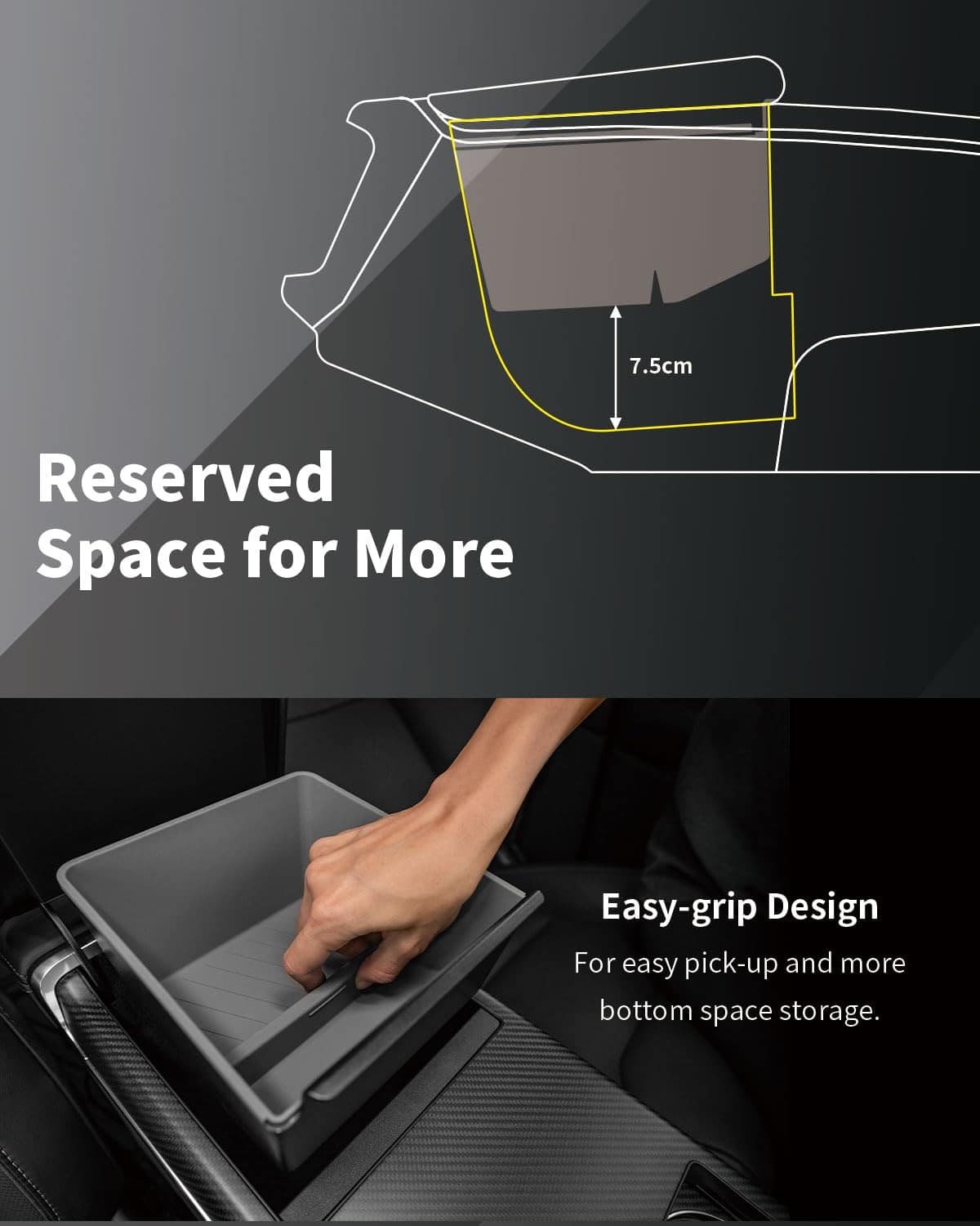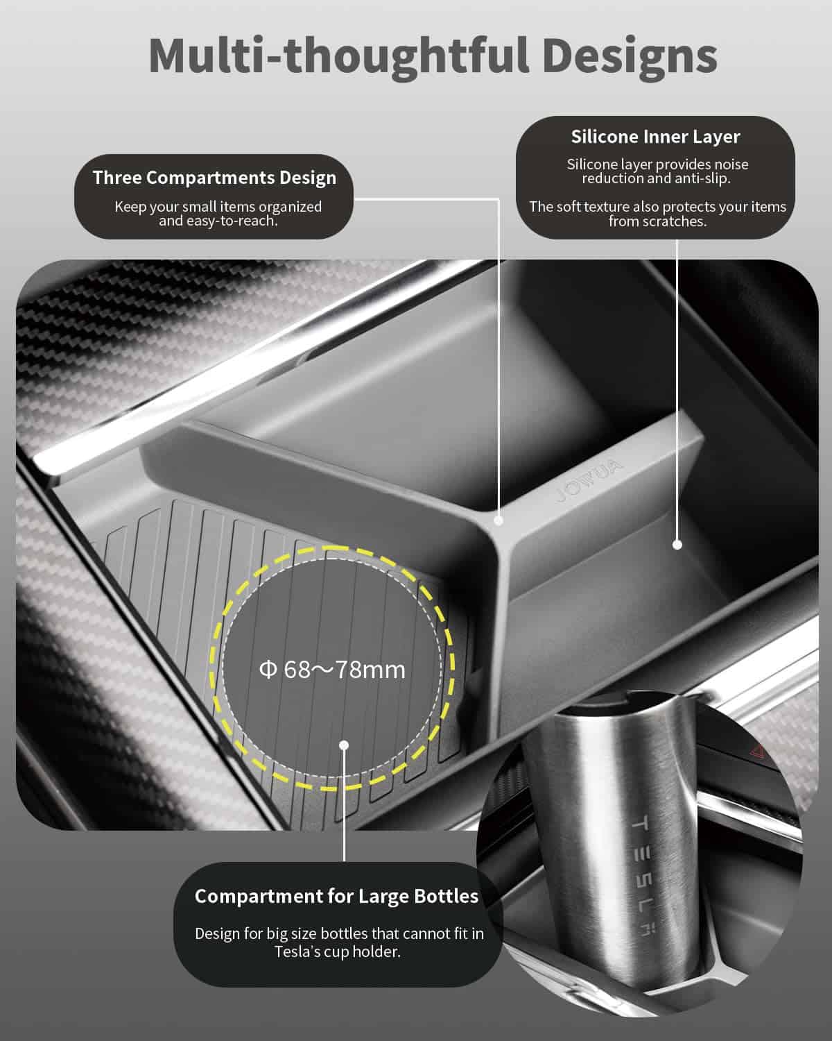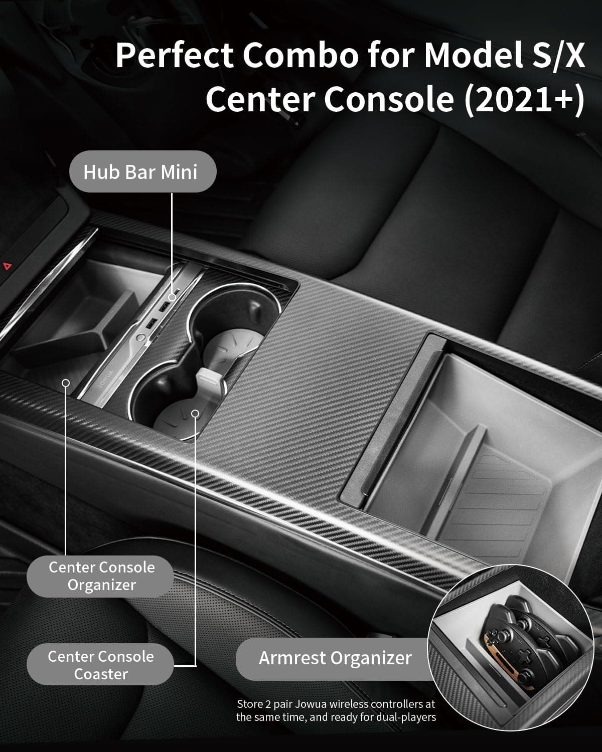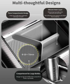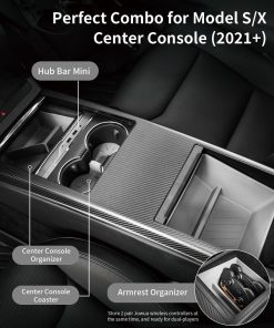 Diseñado para Tesla Model S/X con consola actualizada (2021+). Organizador: Ayuda a que tu consola central esté ordenada y limpia. Mantén organizados tus artículos de uso diario. Posavasos: El posavasos de silicona antideslizante es para los portavasos delanteros. Organizador de reposabrazos: Mantén ordenado y limpio tu compartimiento trasero. Aumenta el espacio de almacenamiento para poner tus gafas de sol, adaptadores de carga, controladores inalámbricos, bolígrafo, pañuelos, etc.