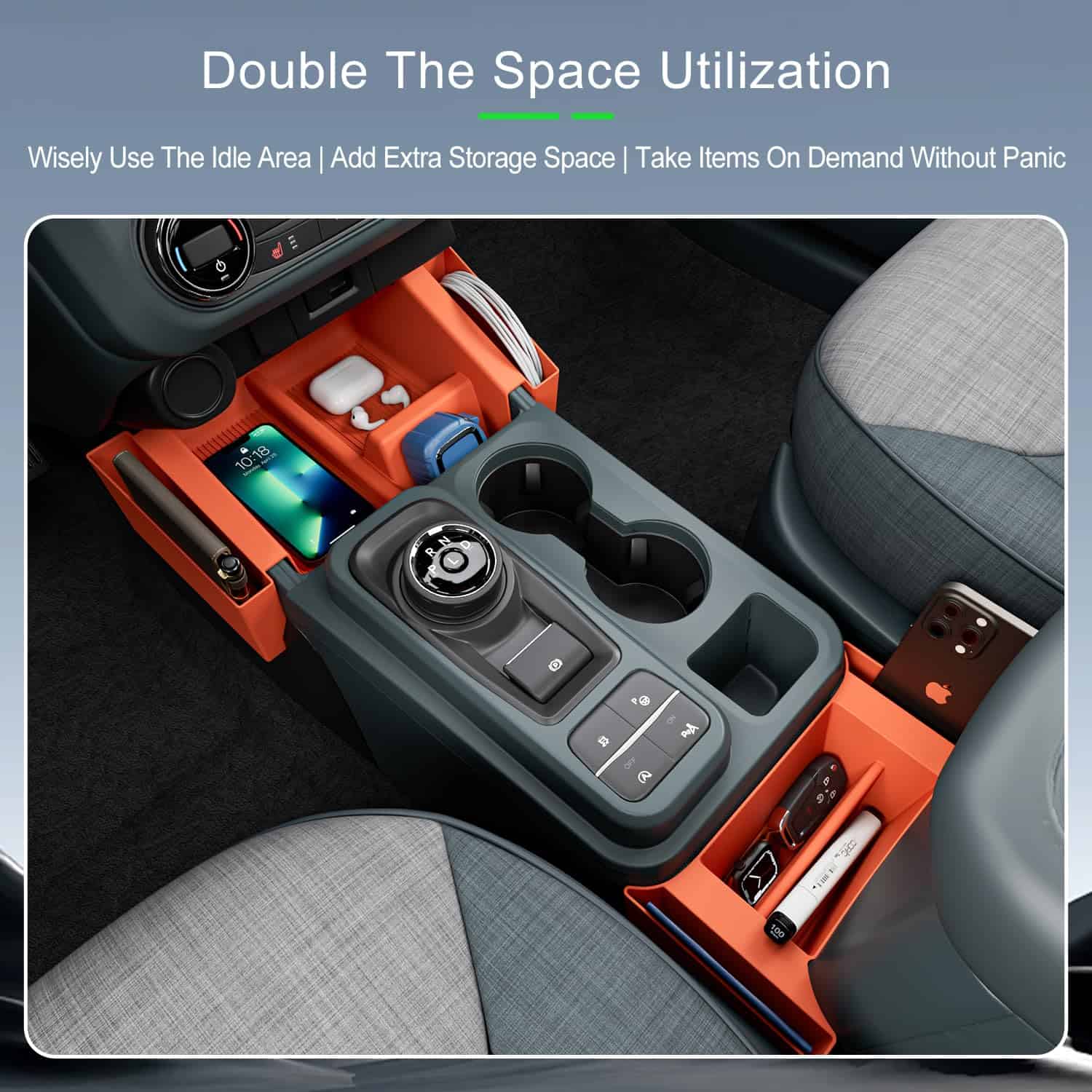 3. Función: La caja de almacenamiento de la palanca de cambios reemplazo para la bandeja de consola central Ford Maverick 2022-2025 protege su consola central de arañazos. Y es resistente al agua, antideslizante y diseñada para áreas divididas. Organizados por su bandeja de consola central, los elementos no chocan fácilmente entre sí para producir arañazos, y no producirán ruido. Sus auriculares, llaves y otros objetos pueden ser organizados en un lugar accesible. Hace que su consola central esté ordenada y organizada.