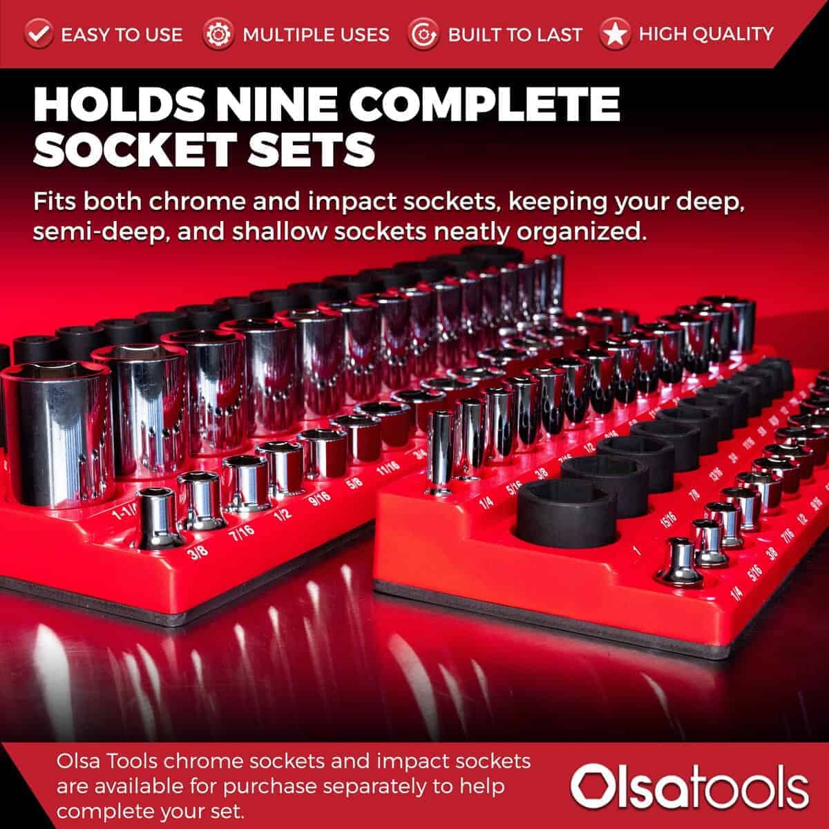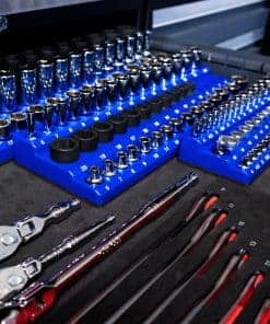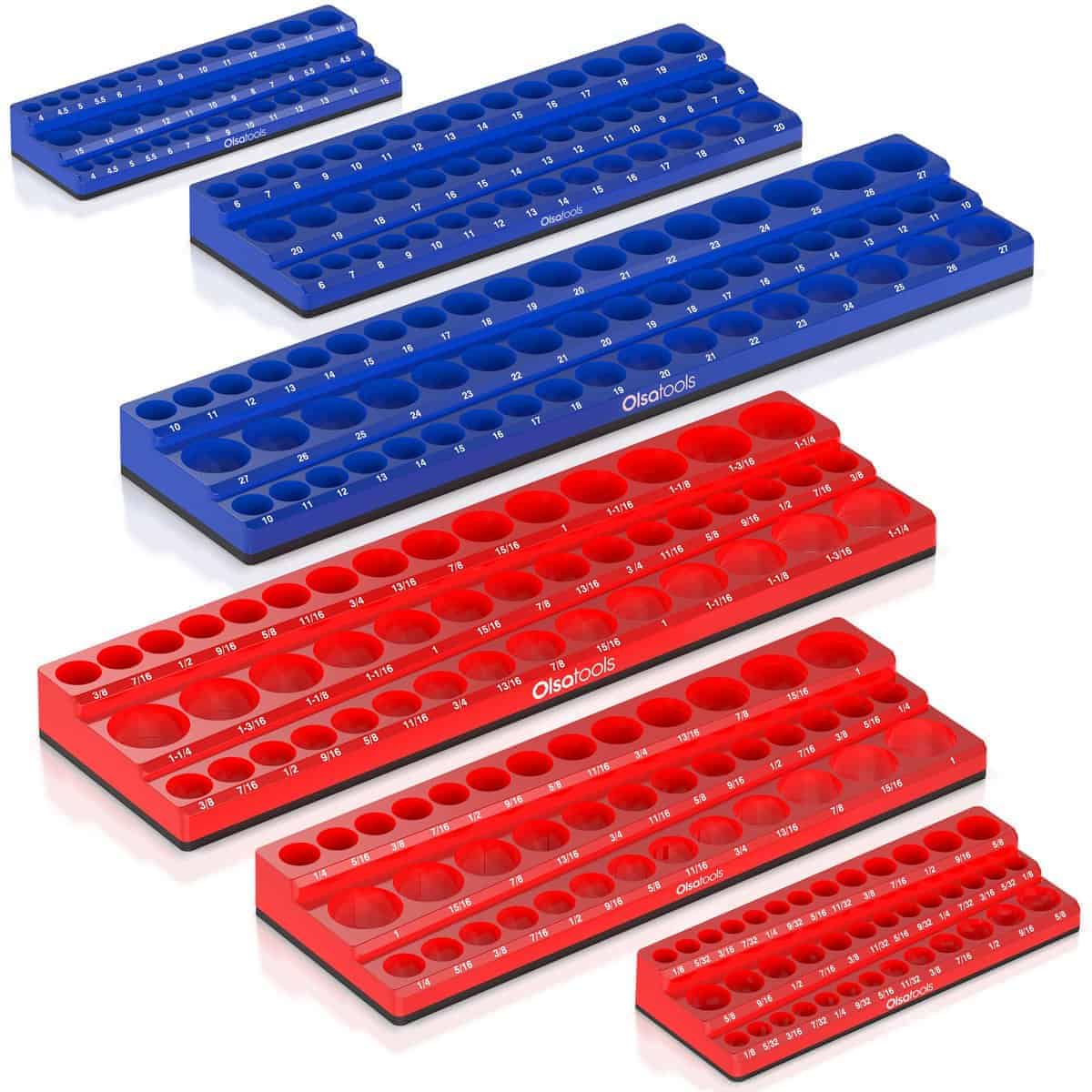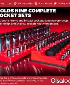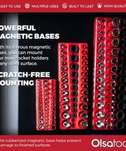 4. FUNCIONA CON TODOS LOS ENCHUFES – Si has estado buscando bandejas de organizadores magnéticos de enchufes que puedan contener TRES juegos de enchufes CROMADOS o DE IMPACTO en cada tamaño de acople, entonces tu búsqueda ha terminado. ¡Incluye los rangos de tamaño más populares para enchufes de acople de 1/4″, 3/8″ y 1/2″ en tamaño métrico y SAE sin omitir tamaños!