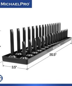 2. FILAS DOBLES DE ENCHUFES Mantiene tanto enchufes profundos como superficiales, haciendo que tu organización sea más fácil y eficiente. Ten todos tus enchufes mostrados de manera ordenada y hermosa en estos soportes. Con una altura máxima de clavija de 3.8 pulgadas, estos soportes son compatibles con múltiples sistemas de almacenamiento de herramientas.