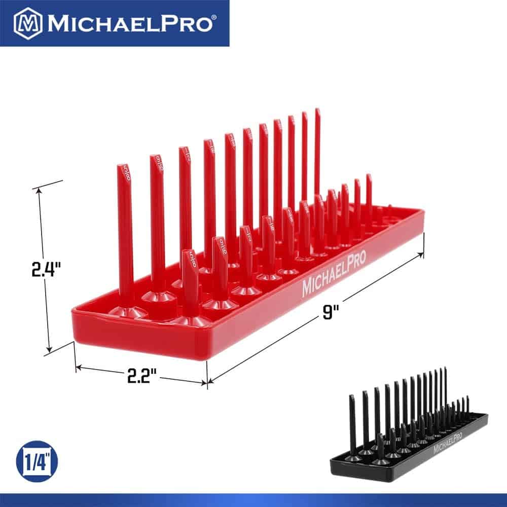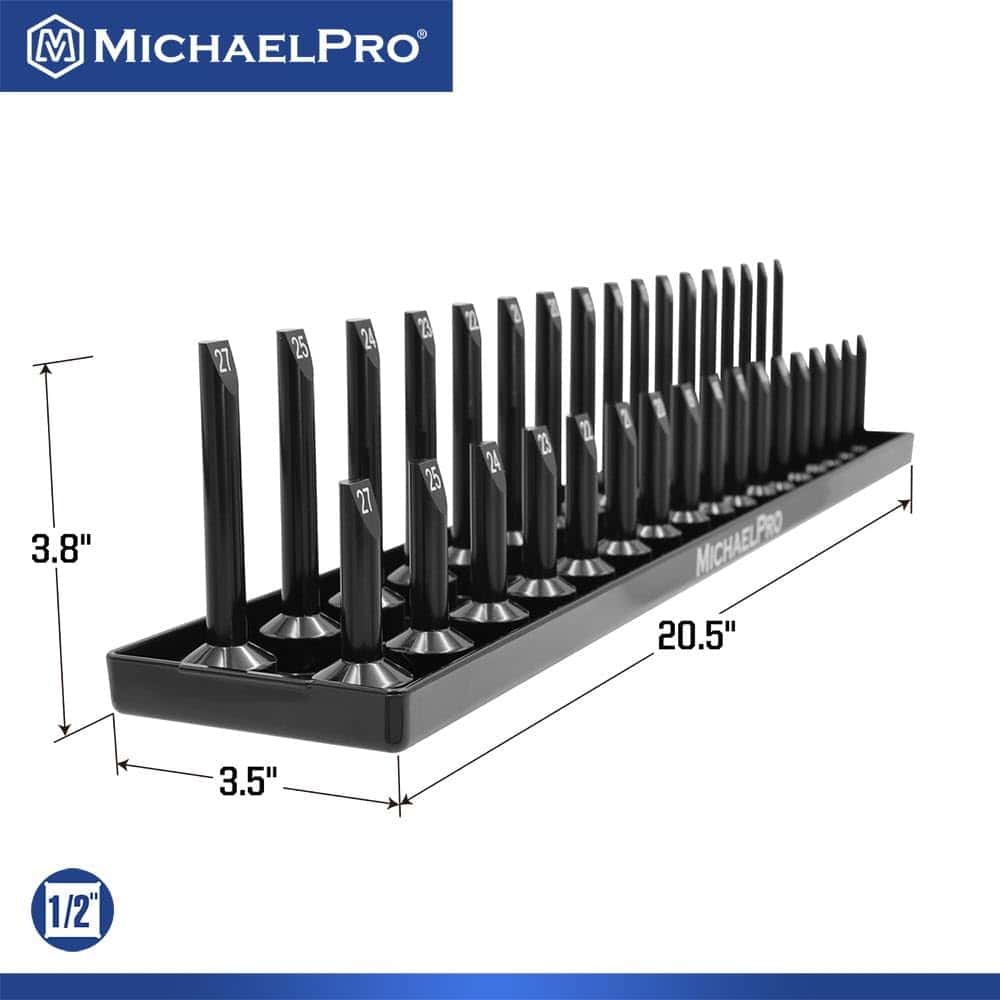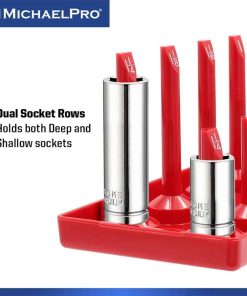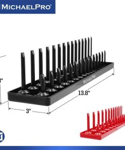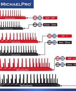Experimenta la conveniencia de una colección de enchufes perfectamente organizada con nuestro juego de 6 bandejas de enchufes. Diseñado para acomodar enchufes SAE y métricos profundos y superficiales en tamaños de unidad de 1/4, 3/8 y 1/2 pulgadas, nunca más perderás tiempo buscando el enchufe correcto.