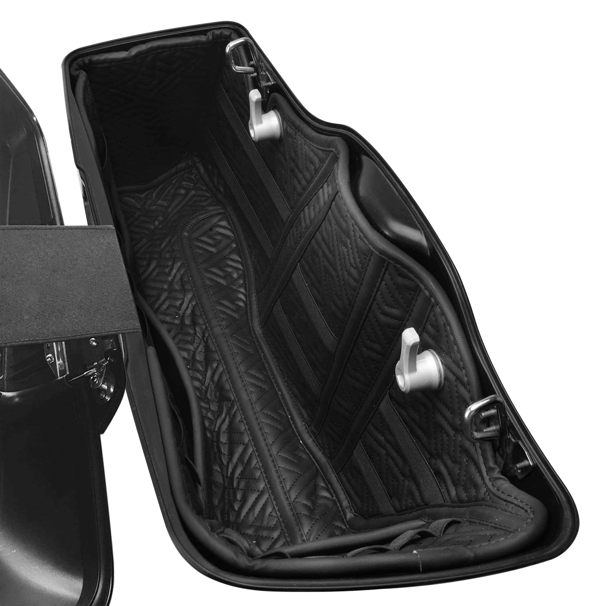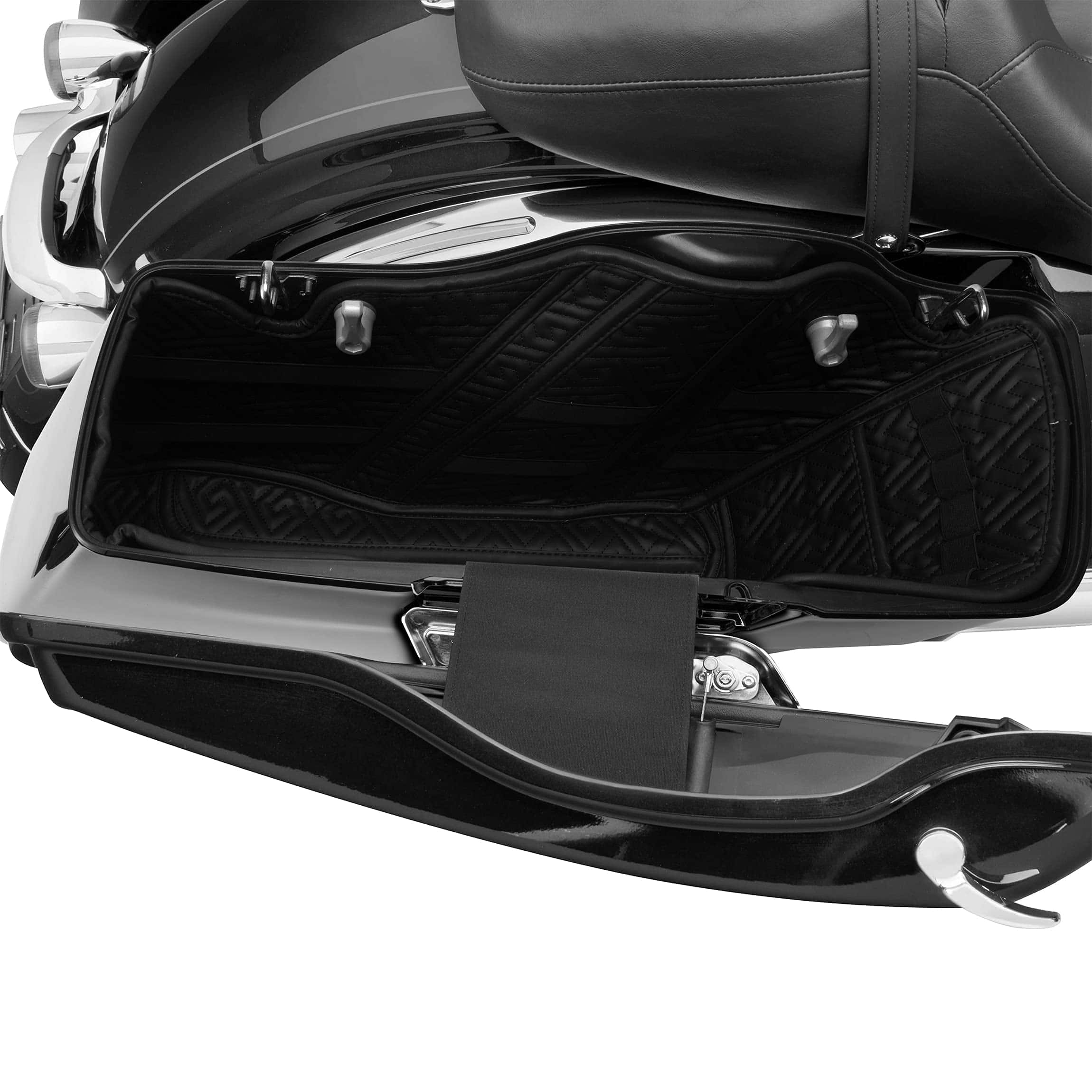 Los forros de bolsas de 2021 Street Glide protegen sus pertenencias y reducen el ruido y los traqueteos en la carretera. Mantiene el ruido a raya. Protegiendo sus pertenencias de roces de los forros de alforjas estándar con forma.