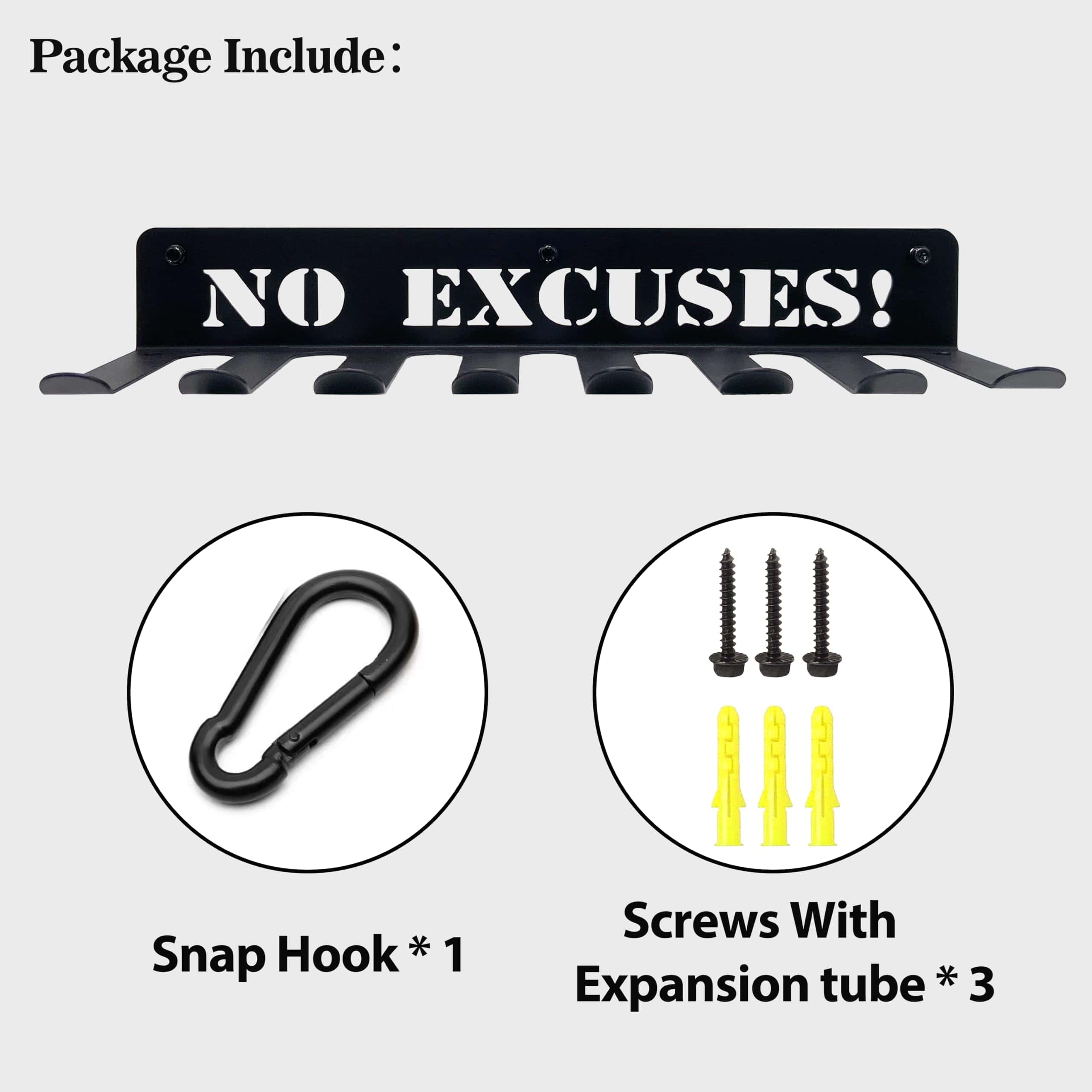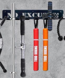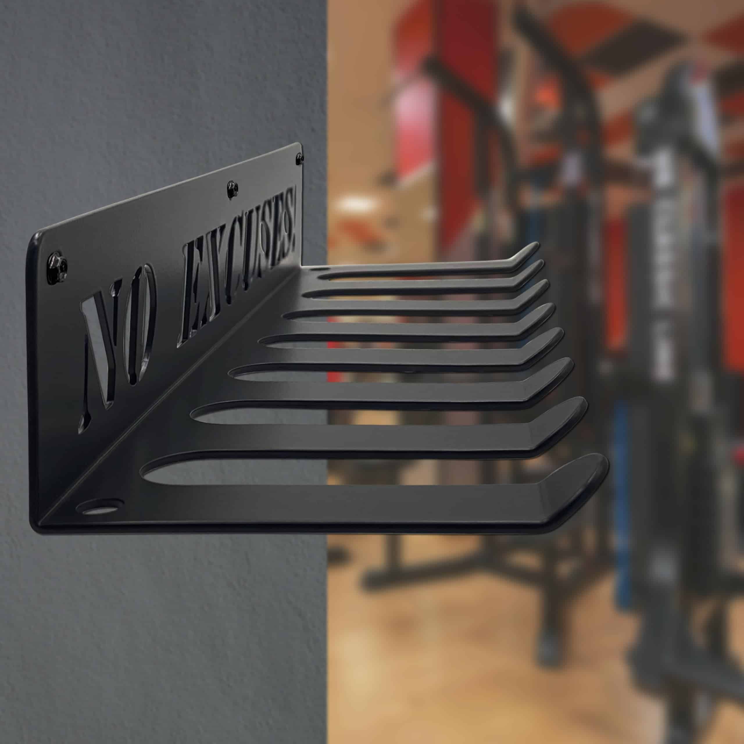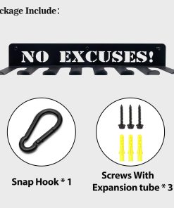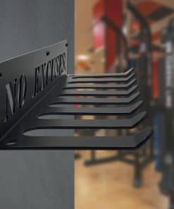 4. Decoración Motivacional: Además de su valor funcional, nuestro estante presenta la frase motivadora ‘Sin Excusas’ para crear un ambiente positivo y alentador en tu gimnasio en casa. Esta decoración para gimnasio en casa ayuda a fomentar una mentalidad motivada, especialmente durante entrenamientos desafiantes.