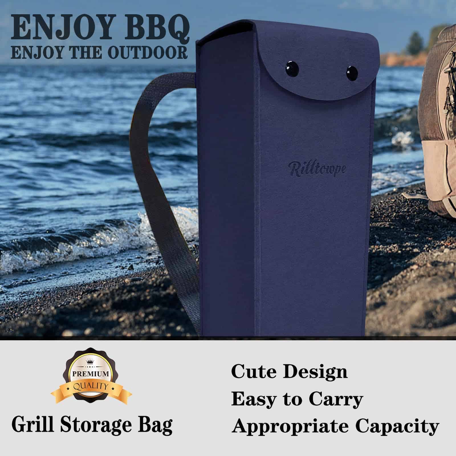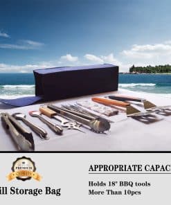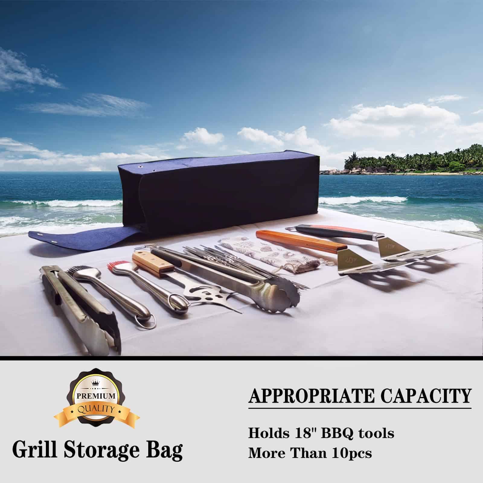 1. CAPACIDAD GRANDE – para sostener la mayoría de las herramientas de parrilla de 18 » para guardar y transportar las herramientas de parrilla.