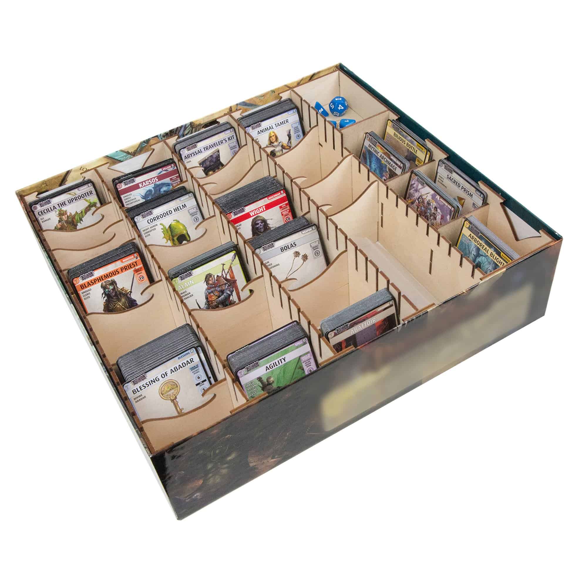 ¡Nuestro Organizador de Caja de PACG seguramente pondrá en orden a tus Secuaces y limpiará ese arsenal desorganizado! ¡No puedes recordar dónde pusiste esa Espada Larga +1 o tu Poción de Curación ¡Necesitas uno de estos! Este organizador está diseñado para trabajar con todas las cajas actuales del Juego de Cartas de Aventura Pathfinder.