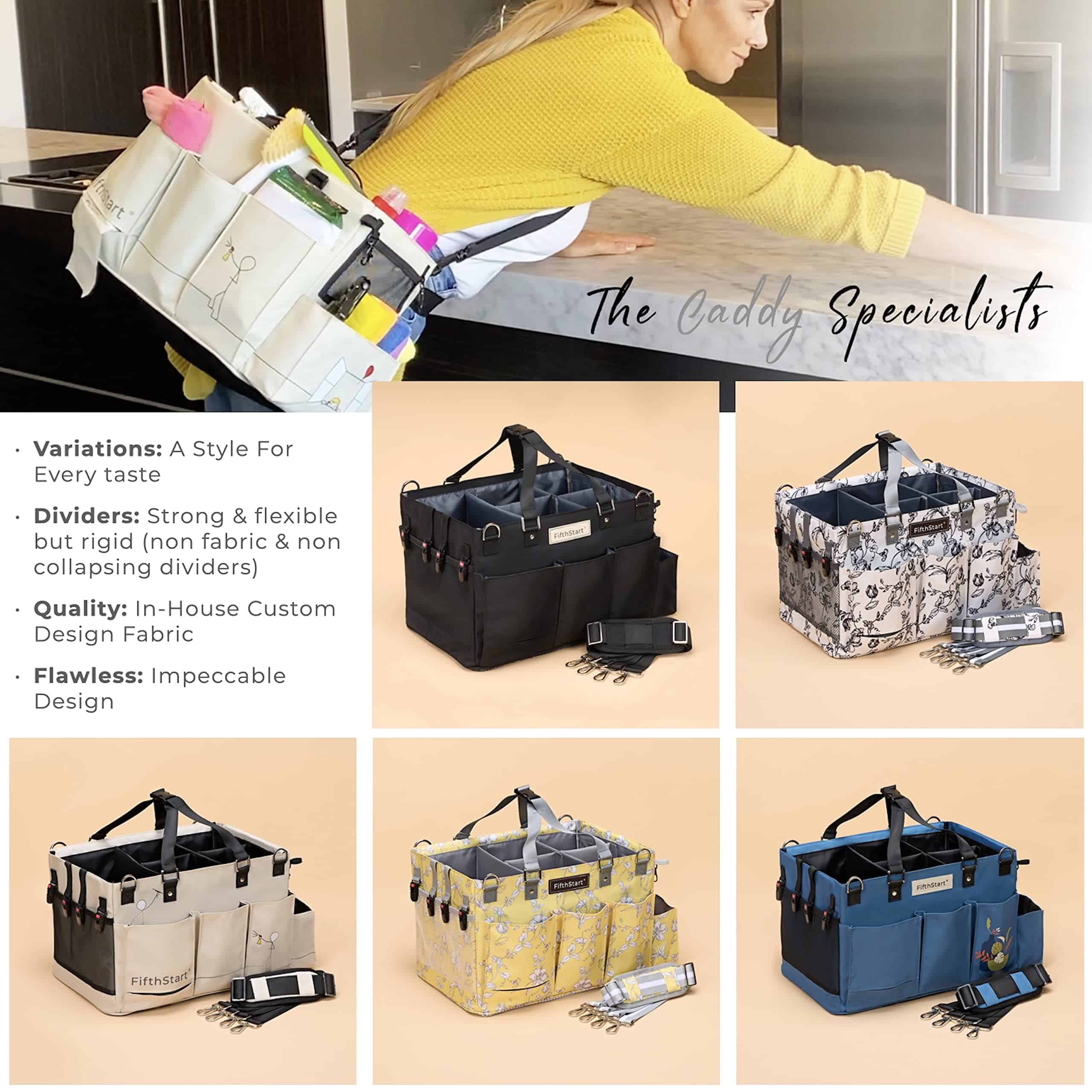 1. Organizador multipropósito: Ya sea que necesites un organizador para el auto, un organizador de pañales, una bolsa de malla para la playa o un organizador de suministros de limpieza, el organizador FifthStart con asa está diseñado para mantener todo ordenado y al alcance.