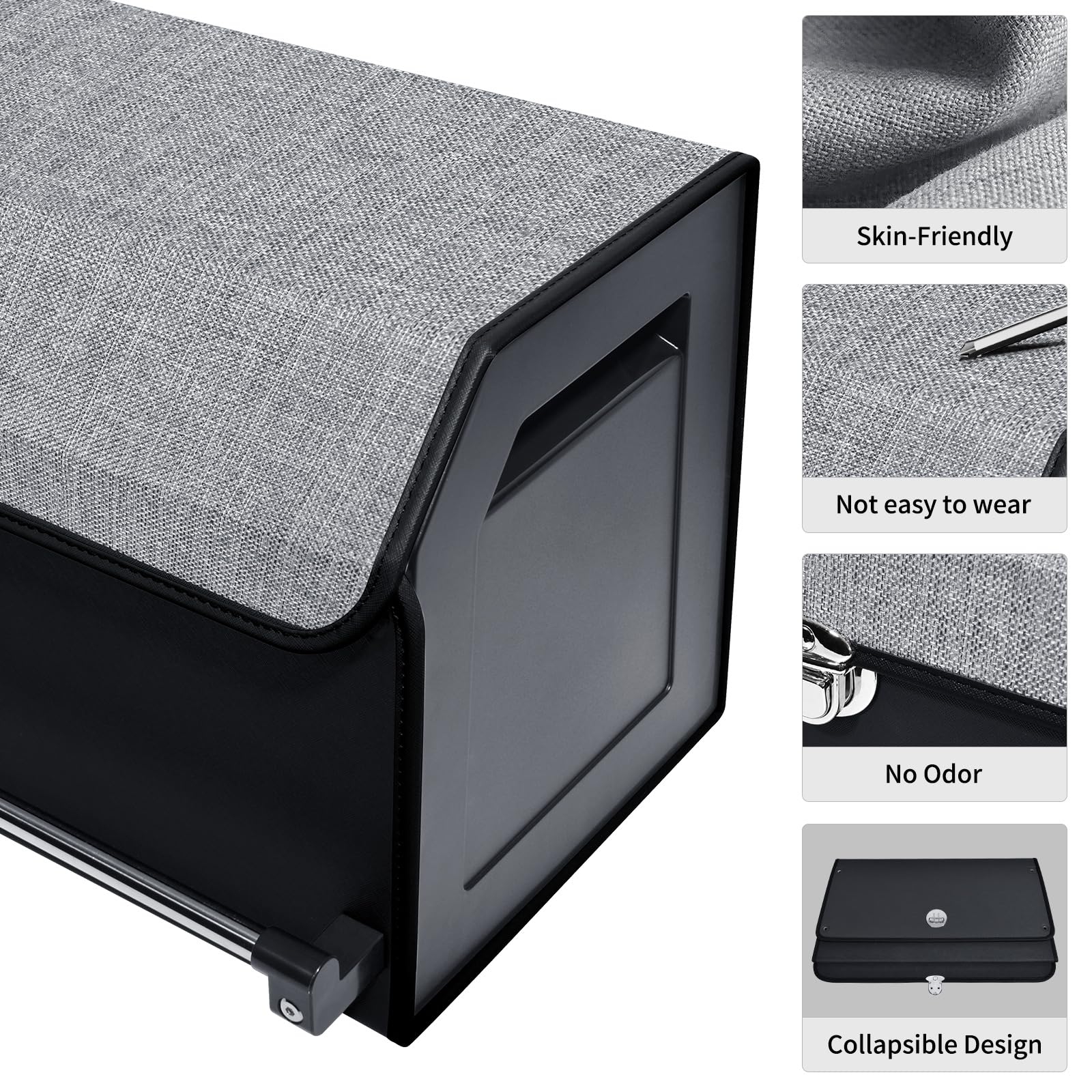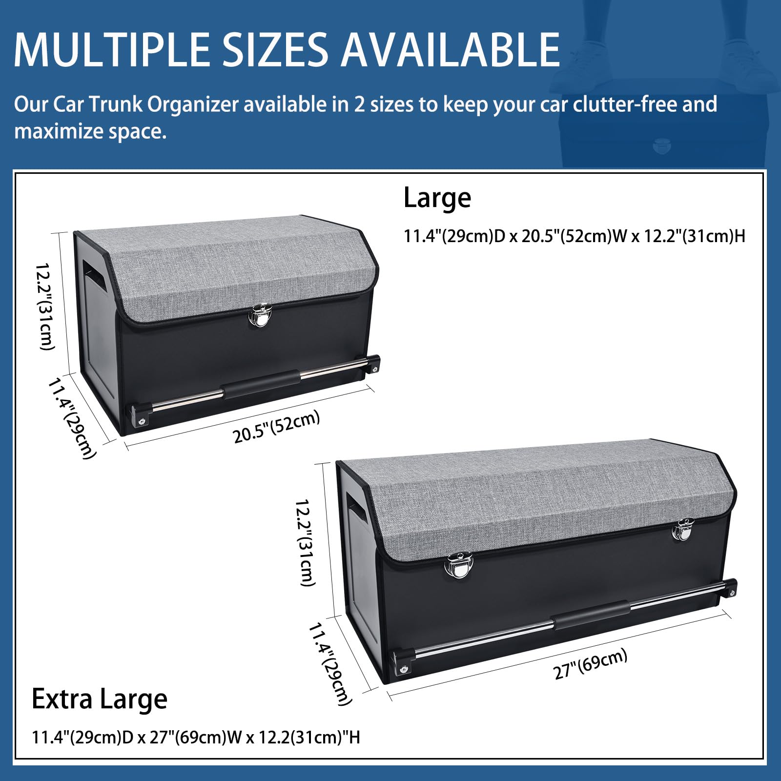 Nuestro Organizador de Maletero Resistente con sus amplios compartimentos y divisor móvil almacenan y organizan sin esfuerzo todos sus elementos esenciales, como comestibles, suministros de emergencia y accesorios para mascotas. Las asas duraderas y la construcción resistente garantizan un transporte fácil, permitiéndole mover el organizador dentro y fuera de su automóvil con facilidad. Cuando no esté en uso, simplemente colápselo para un almacenamiento compacto. No se conforme con un interior de automóvil caótico: ¡obtenga su Organizador de Maletero para Automóvil hoy y experimente la conveniencia y funcionalidad que aporta a su vida diaria. Paquete – Un paquete de organizador de maletero para automóvil Material – Cuero de alta calidad Tamaño – 11.4″ de largo x 27″ de ancho x 12.2″ de alto Color – Negro Consejos – Con todos los accesorios necesarios y una estructura simple, este organizador de maletero para asiento trasero de automóvil es conveniente de configurar. Consulte el manual del organizador de maletero para automóvil para su uso.