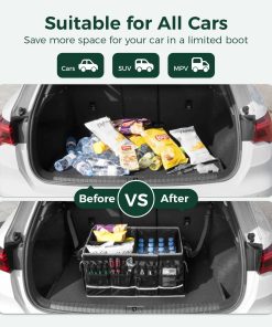Organice su maletero de forma eficiente y mantenga todo en su lugar con el organizador de maletero para coche WELKIN de 15GAL/60L. Fabricado con tela de Oxford premium 600D y costuras reforzadas, este organizador es resistente y resistente al agua, lo que lo convierte en el compañero perfecto para sus viajes en coche. Con una capacidad de 60L, puede contener 2-3 bolsas de comestibles completas y aún así tener espacio para más cosas. Los separadores ajustables y los múltiples compartimentos le permiten organizar a la perfección bocadillos, kits de emergencia y equipo deportivo, para que todo se mantenga en su lugar y sea fácil de acceder. La tapa a prueba de polvo protege sus cosas de la suciedad, la lluvia o frenadas bruscas, y se limpia fácilmente en segundos. Además, este organizador se pliega compactamente en solo 3 segundos, ocupando muy poco espacio cuando no está en uso. Se adapta a cualquier tipo de coche, desde SUVs hasta sedanes y camiones, y se mantiene firme gracias a la base antideslizante y las correas ajustables. ¡Haga que sus viajes por carretera, compras en Costco o campamentos sean más organizados y libres de desorden con este fantástico organizador de maletero!