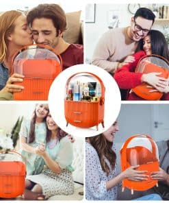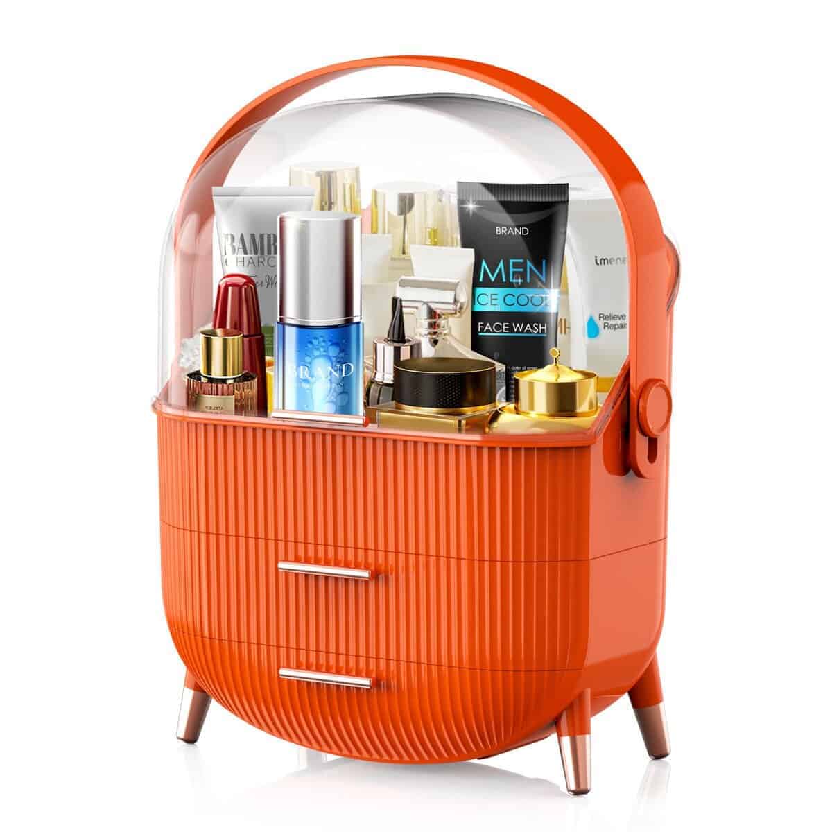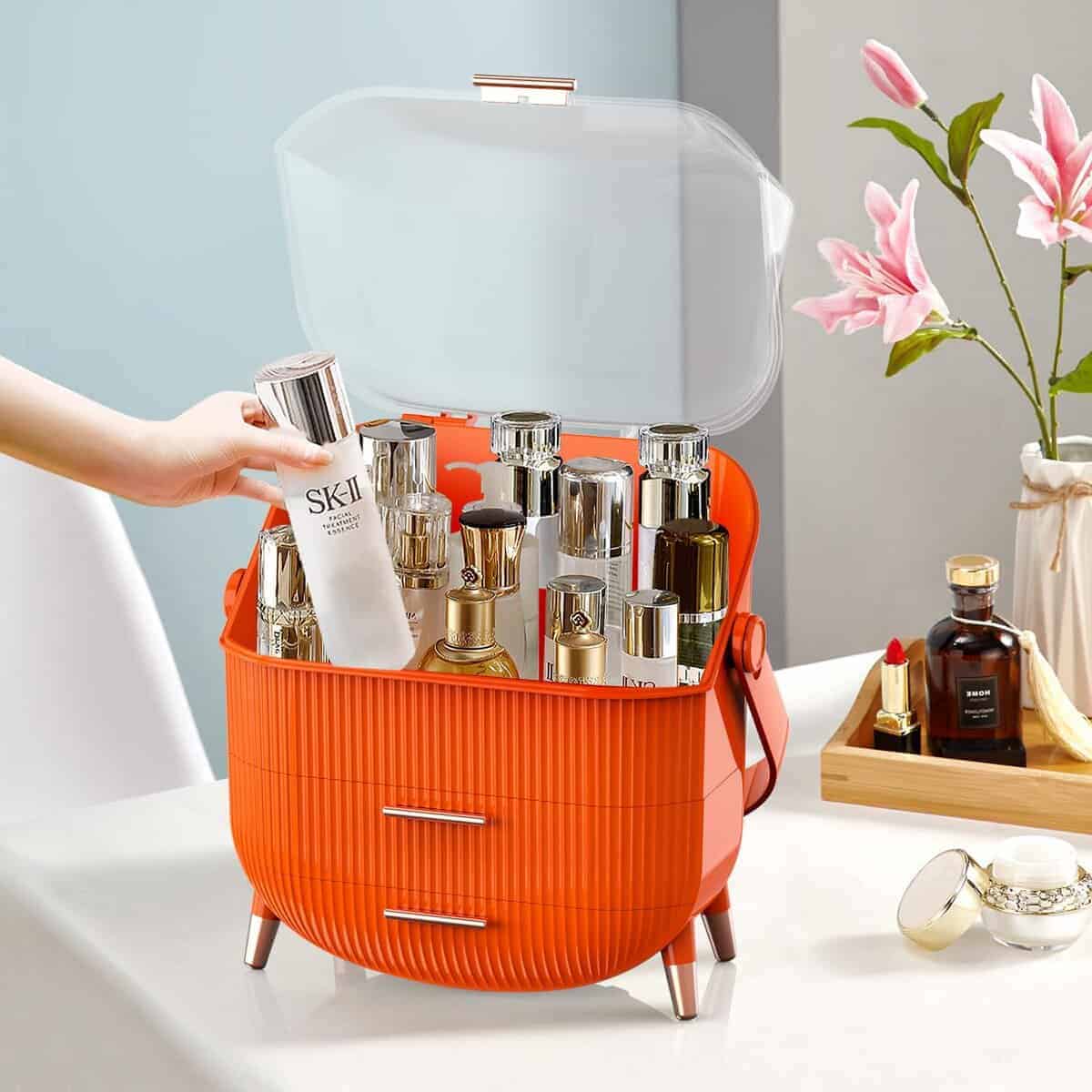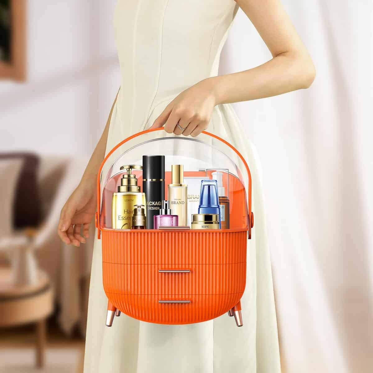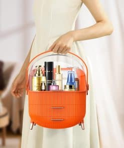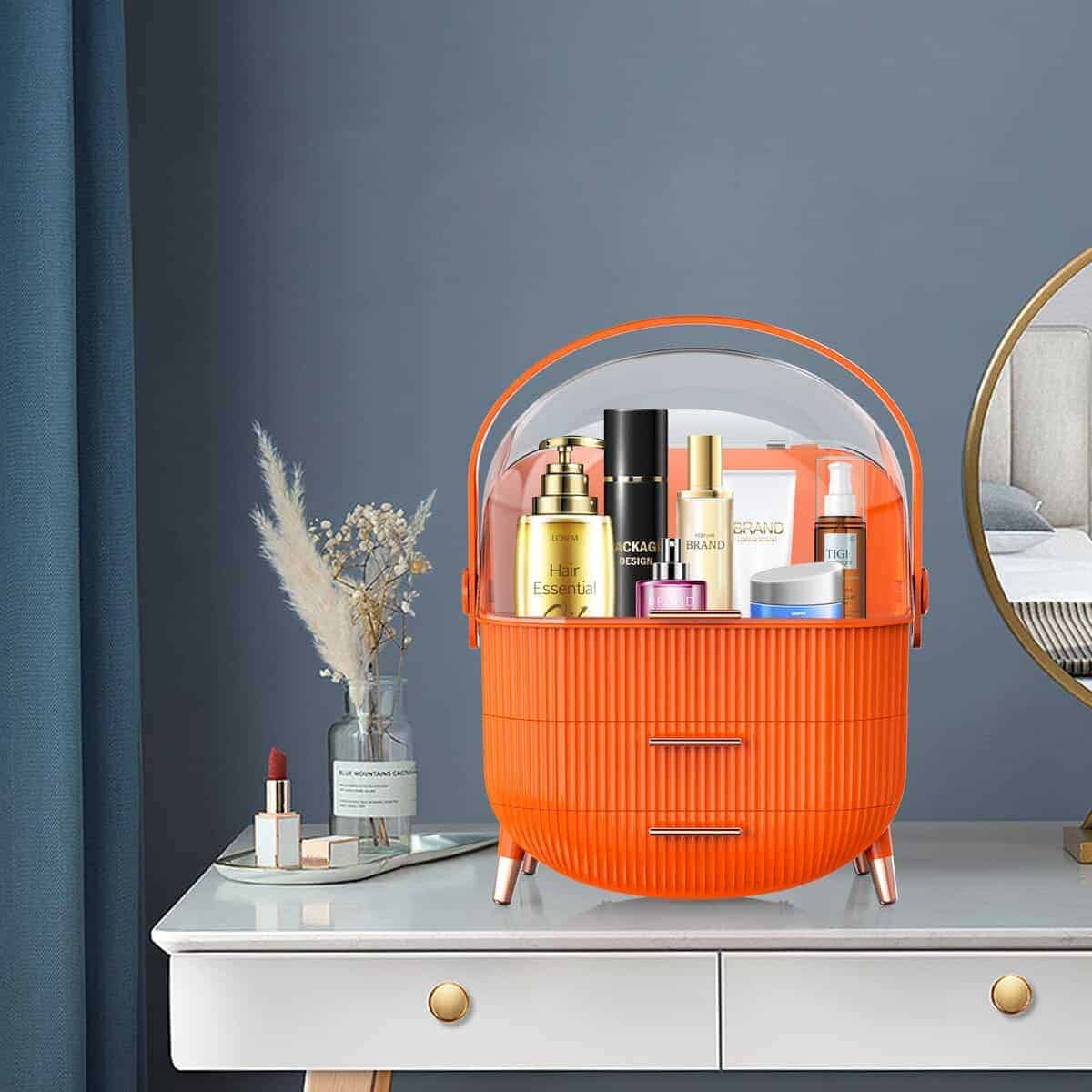 4. Agarra y ve: la cubierta acrílica transparente del organizador de maquillaje mantiene tus productos de cuidado de la piel alejados del polvo, manteniendo tu tocador limpio. El almacenamiento de maquillaje se puede usar para dormitorios, tocadores y artículos de tocador de baño. El diseño del asa te permite llevar fácilmente el maquillaje a cualquier lugar, un gran asistente de viaje.