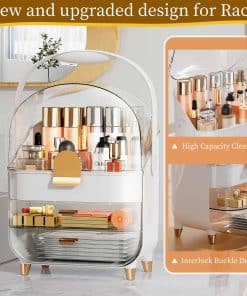El organizador de maquillaje y cuidado de la piel es el regalo perfecto para tu esposa, novia, madre, hija, amigos y seres queridos en el Día de la Madre, Acción de Gracias, Halloween, Navidad, Aniversario, Cumpleaños o cualquier otra festividad. El organizador tiene un diseño elegante que lo convierte en una pieza única y hermosa en cualquier espacio. Con capacidad para almacenar una gran cantidad de productos de cuidado de la piel y maquillaje, este organizador te ayudará a mantener tu tocador ordenado y limpio. Su material resistente y duradero asegura que dure mucho tiempo. ¡Hazte con este organizador y mejora la apariencia de tu hogar hoy mismo!