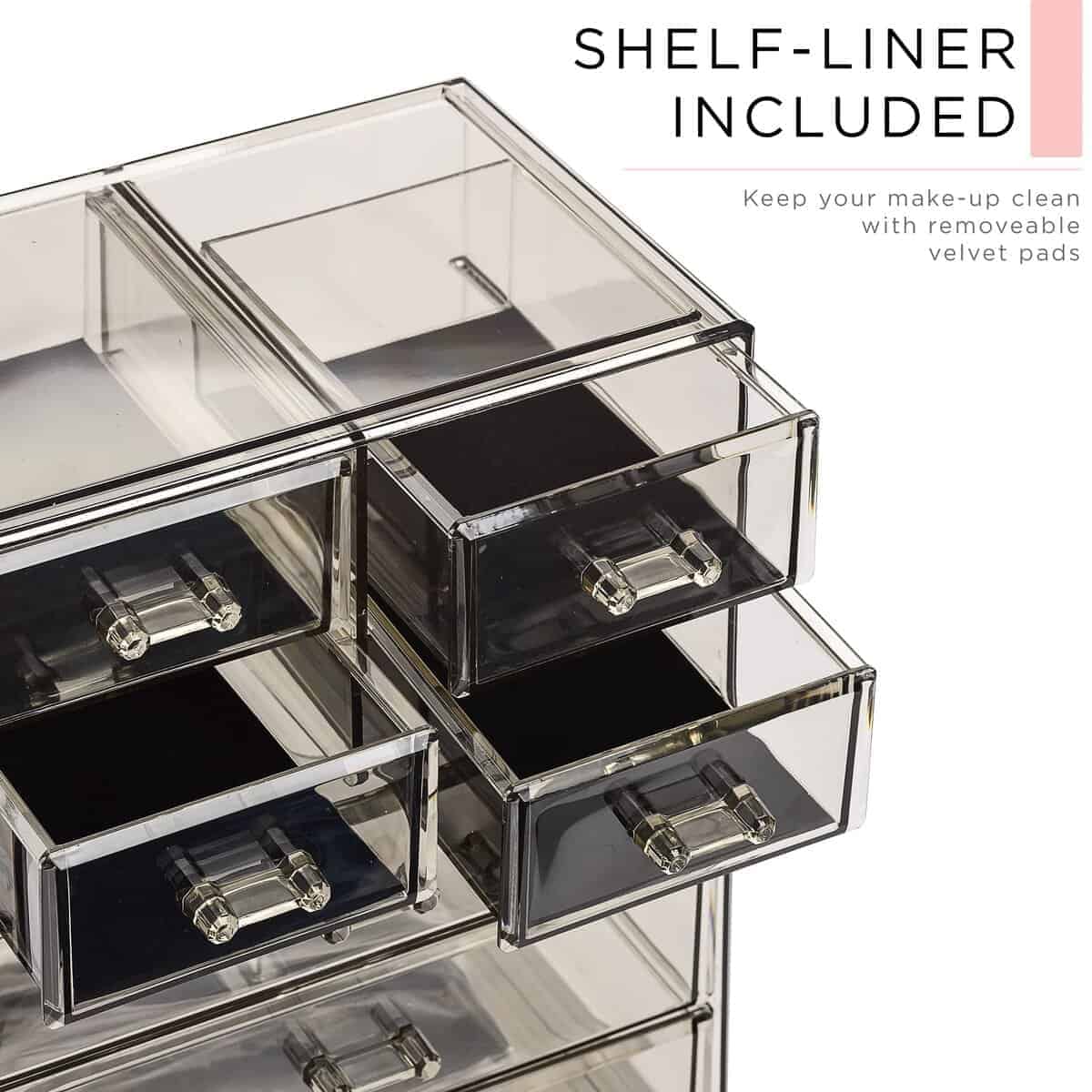 5. Duradero y duradero – Hecho de plástico transparente duradero tipo acrílico – Incluye 4 cajones grandes, 2 cajones pequeños y 16 compartimentos de ranura – Los cajones se deslizan suavemente con asas de fácil agarre – También se puede usar para complementar otros organizadores de Sorbus – Medidas aproximadas de 9.25 L x 6.25 W x 14.25 H (cajones 1.87 de profundidad)